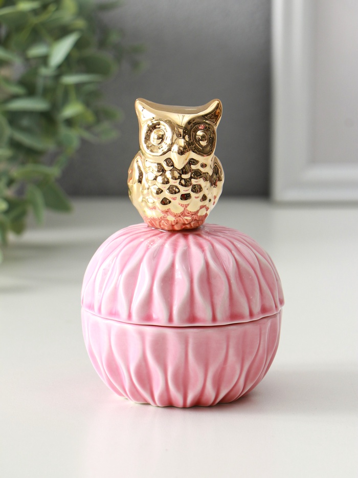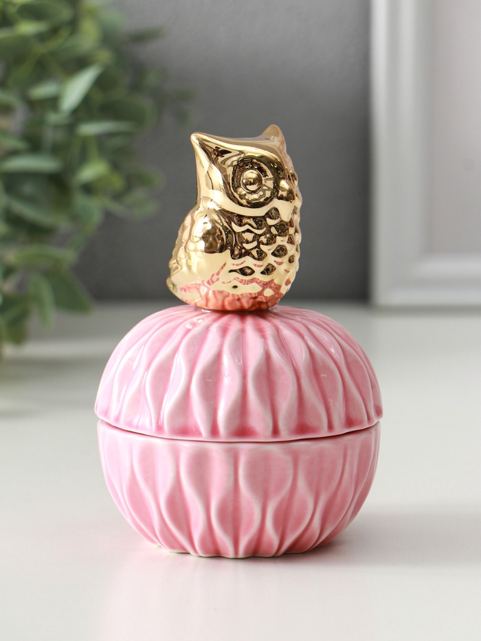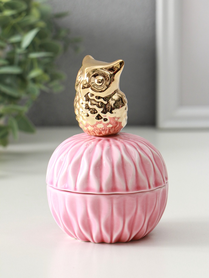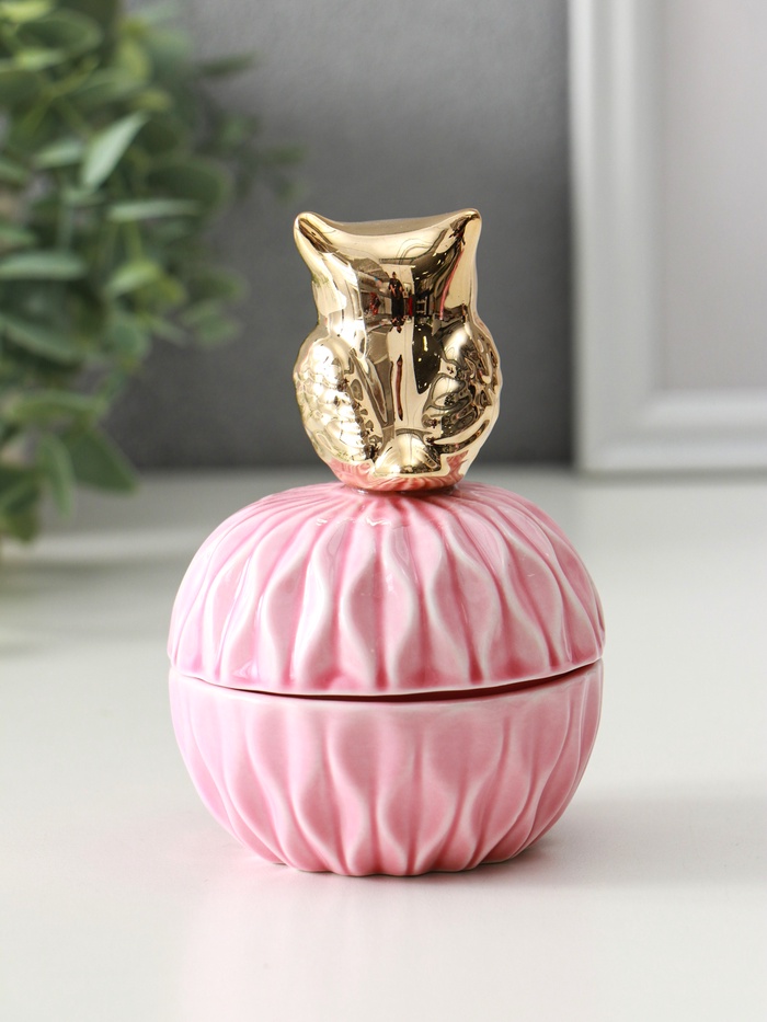 Эта розовая керамическая шкатулка станет особым местом для хранения ваших драгоценностей. Фигурная крышка с изящным золотым декором превращает её в самостоятельное украшение интерьера. Компактный шар идеально вписывается в пространство туалетного столика, сохраняя ваши кольца, серьги и браслеты в полном порядке.