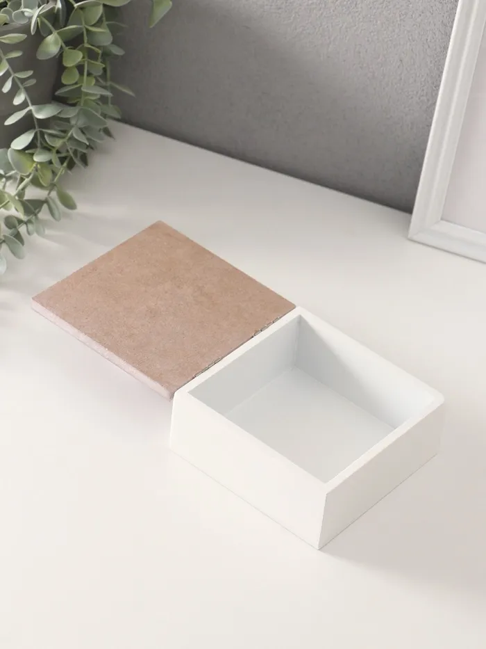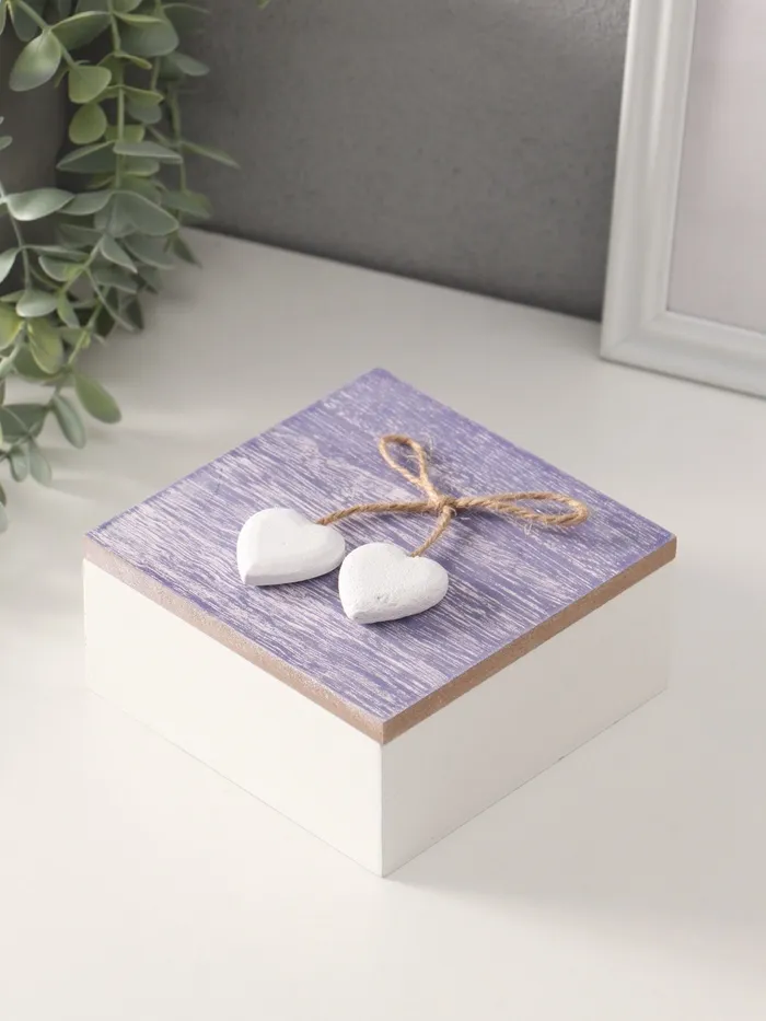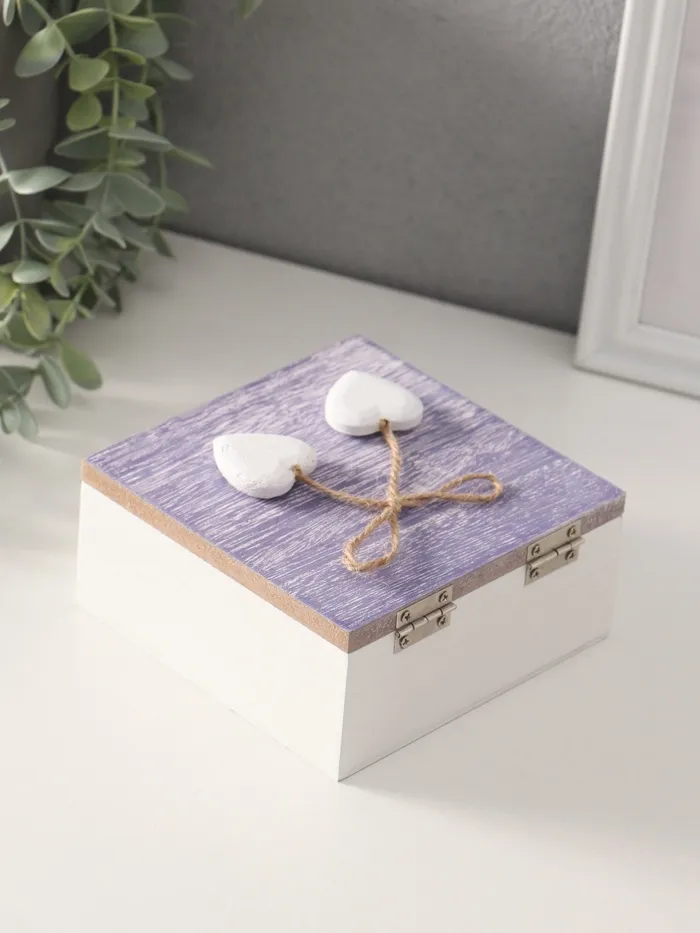 Шкатулка для украшений «Сердечки белые на сиреневом квадрате», дерево, 12×12×5.3 см — Характеристики