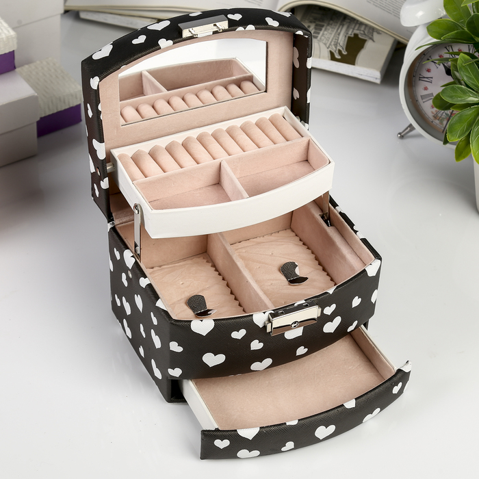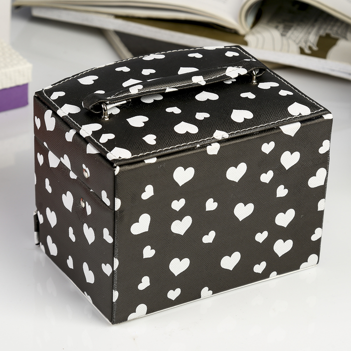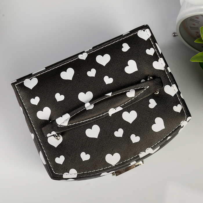 Шкатулка для украшений «Сердечки на чёрном», кожзам, с замком и ключом, 11×16×13 см — Характеристики