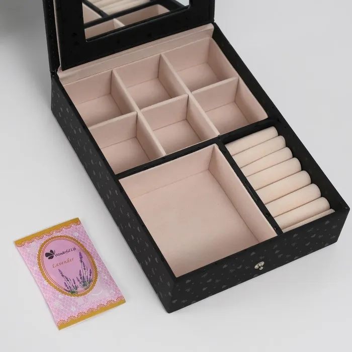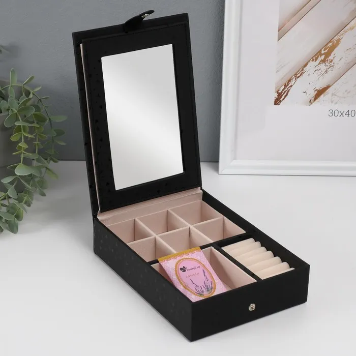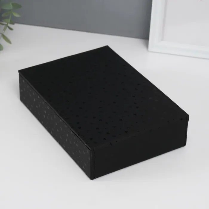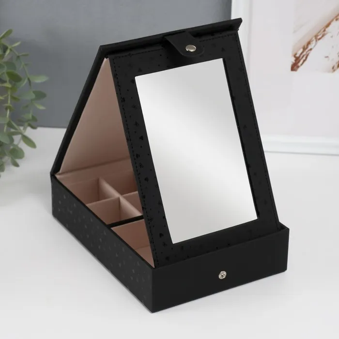 Шкатулка для украшений «Сердечки», с зеркалом, искусственная кожа, чёрная, 15×21.5×5.5 см — Характеристики