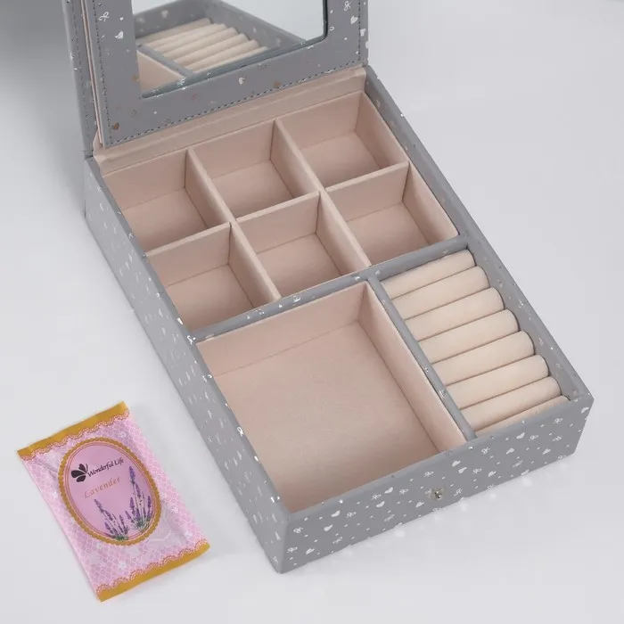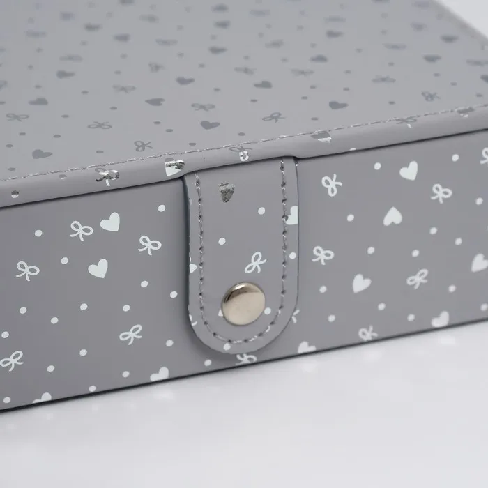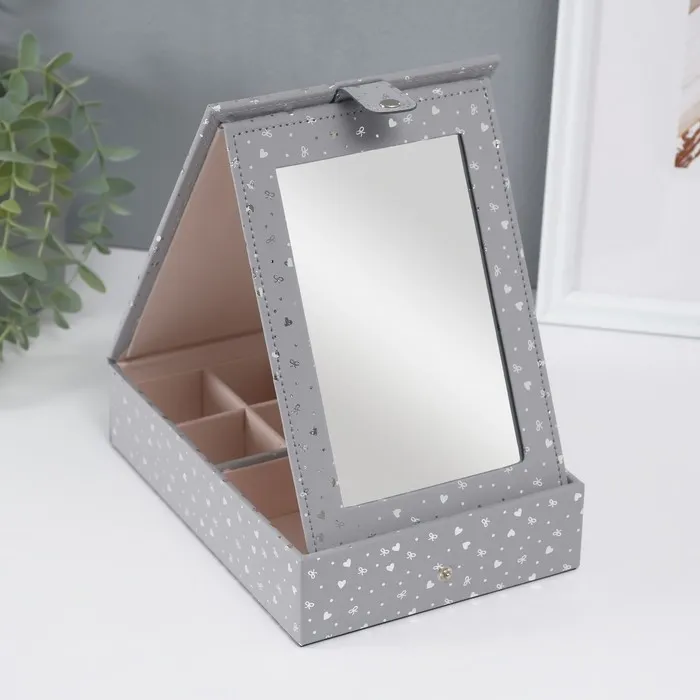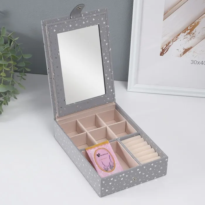 Шкатулка для украшений «Сердечки», с зеркалом, искусственная кожа, серая, 15×21.5×5.5 см — Характеристики