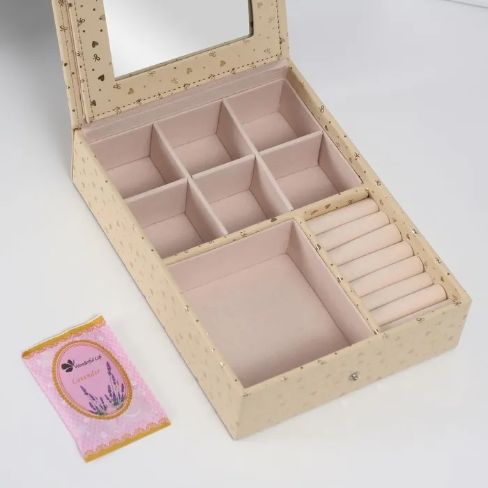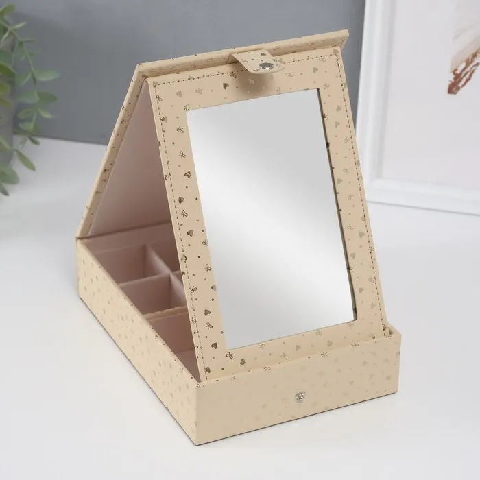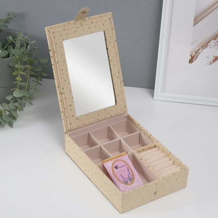 Шкатулка для украшений «Сердечки», с зеркалом, искусственная кожа, золото, 15×21.5×5.5 см — Характеристики