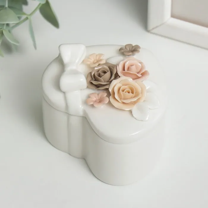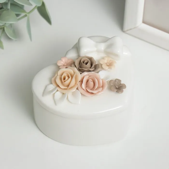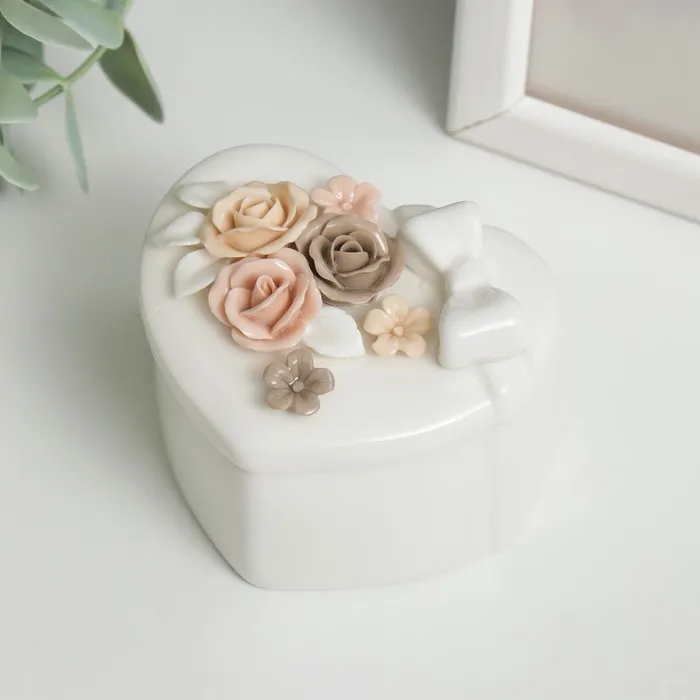 Шкатулка для украшений «Сердце. Бант и розы», керамика, 5.8×8×6.8 см, МИКС — Характеристики