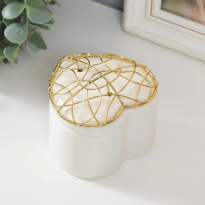 Шкатулка для украшений «Сердце. Каракули», для мелочи, керамика, металл, белая, 8.9×8.5×7.2 см — Характеристики