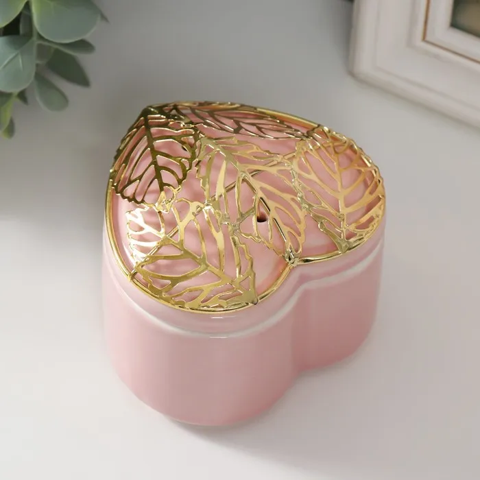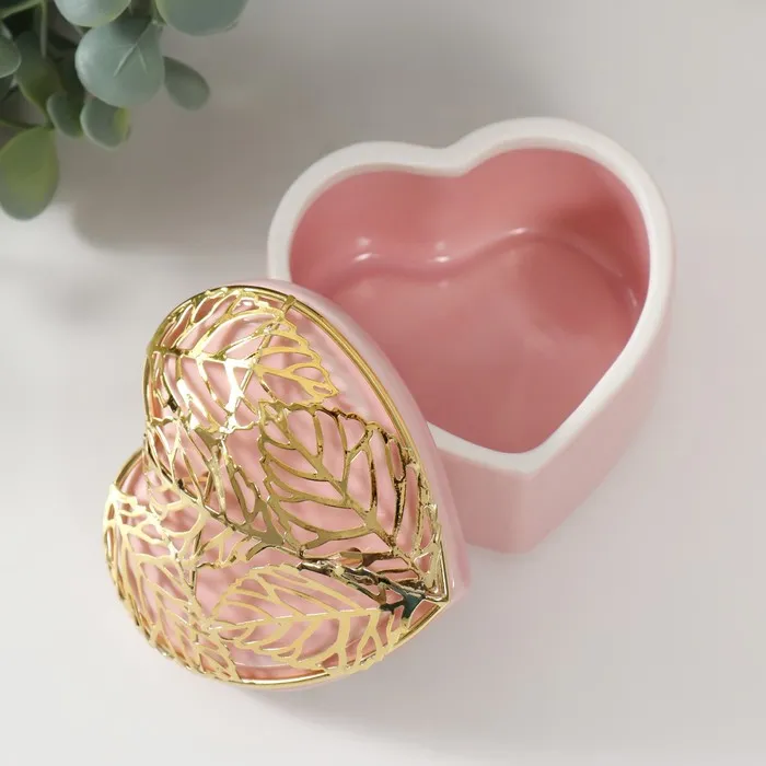 Шкатулка для украшений «Сердце с листьями», для мелочи, керамика, металл розовая, 9×8.5×7.2 см — Характеристики