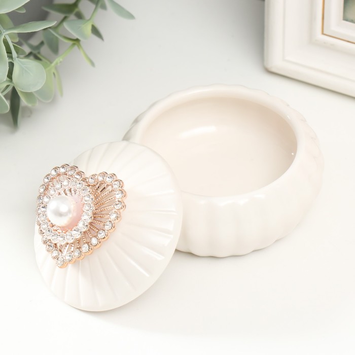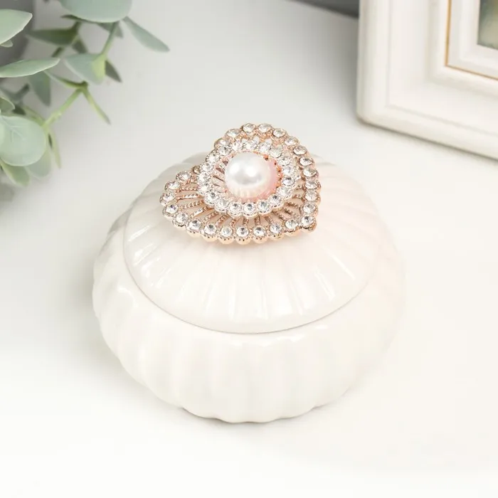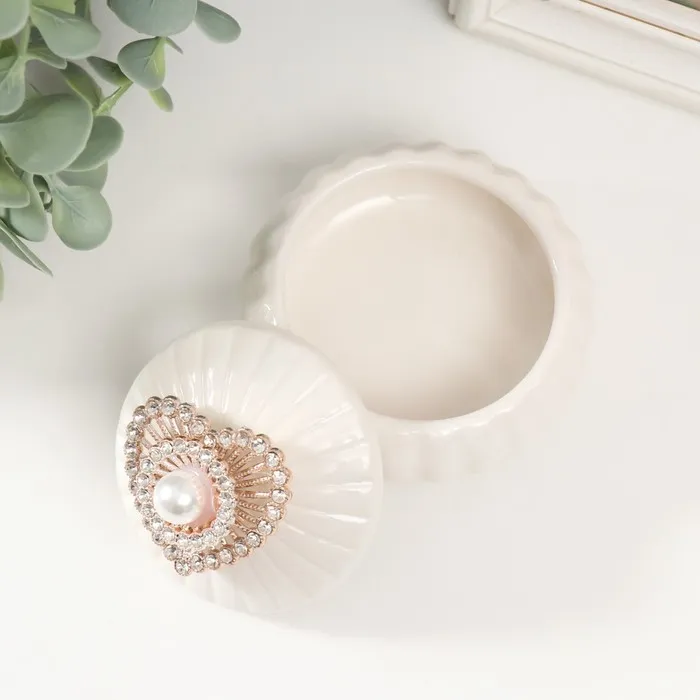 Шкатулка для украшений «Сердце со стразами и жемчужиной», для мелочей, керамика, 8.5×8.5×7 см — Характеристики