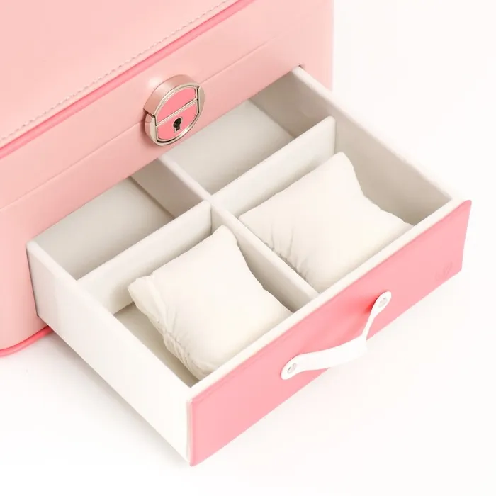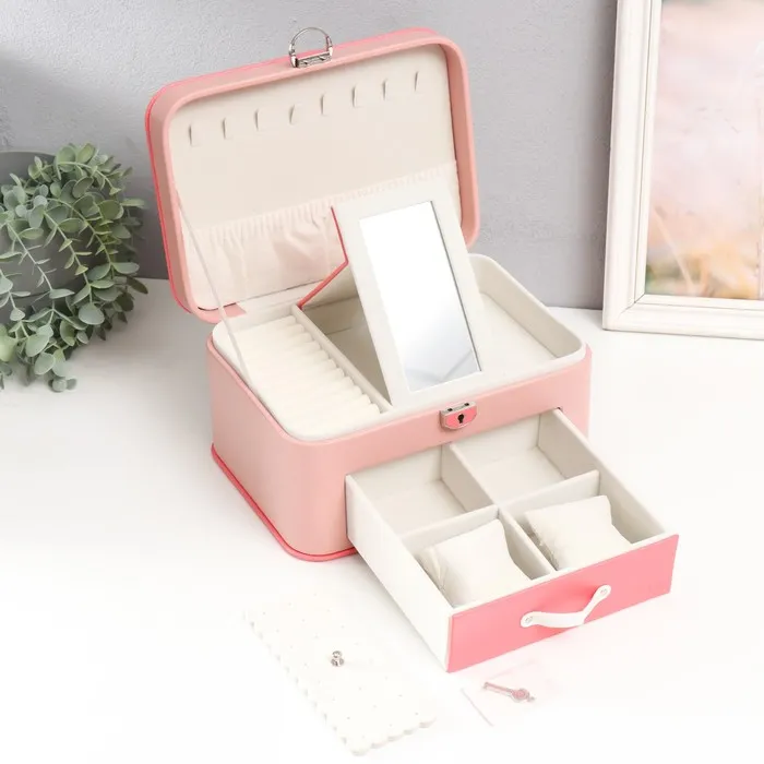 Шкатулка для украшений «Шейла», с зеркалом, искусственная кожа, с замком, розовая, 25.5×18.5×14 см — Характеристики