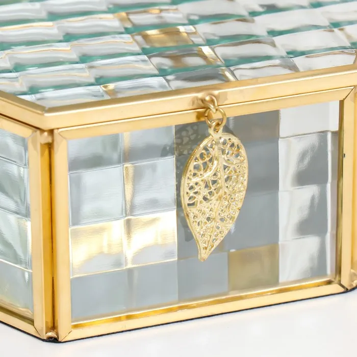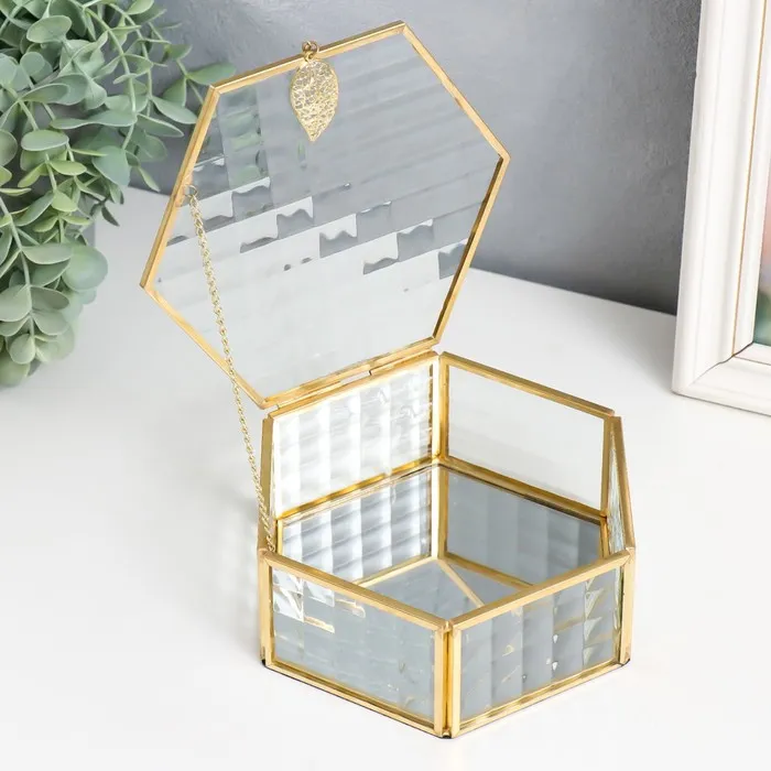 Шкатулка для украшений «Шестигранник с листом», стекло с металлическим каркасом, 17×14.8×6.5 см — Характеристики