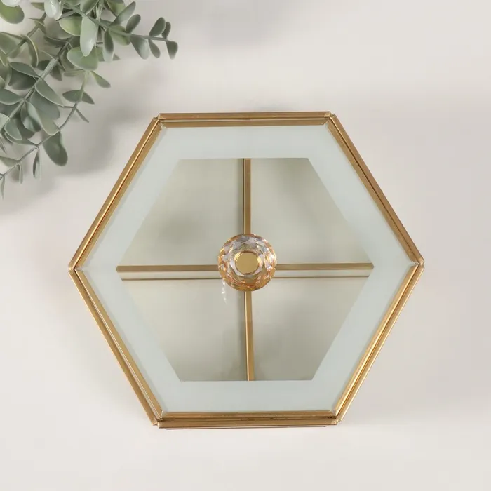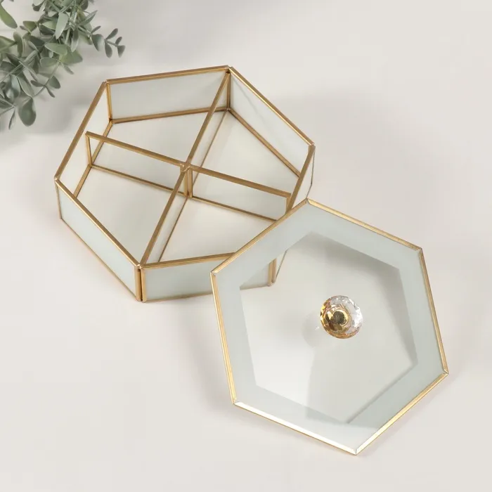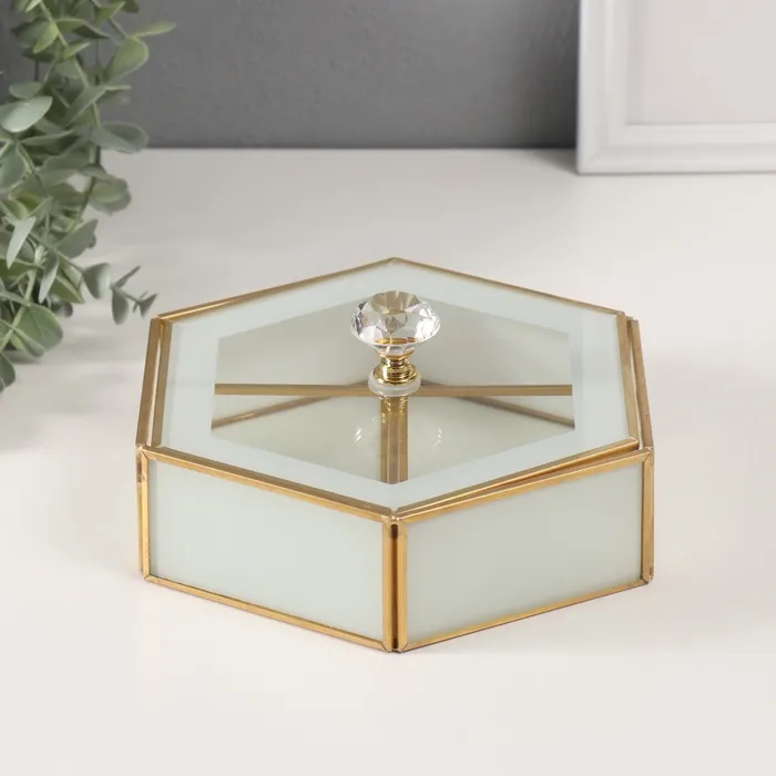 Шкатулка для украшений «Шестиугольник», стекло с металлическим каркасом, прозрачный белый, 17.5×20×8 см — Характеристики