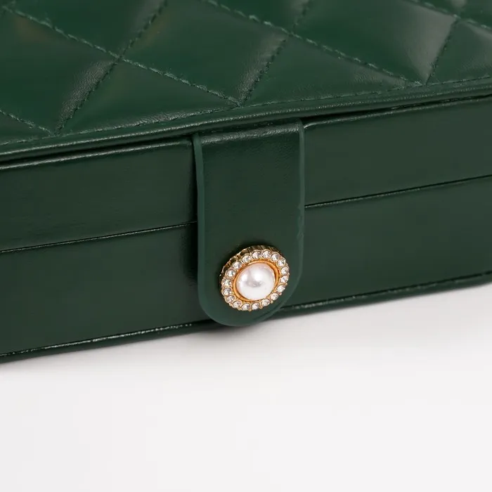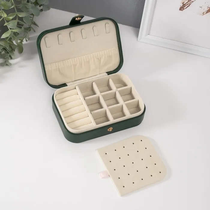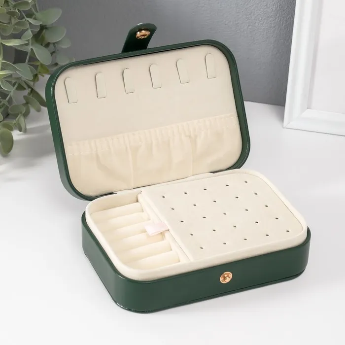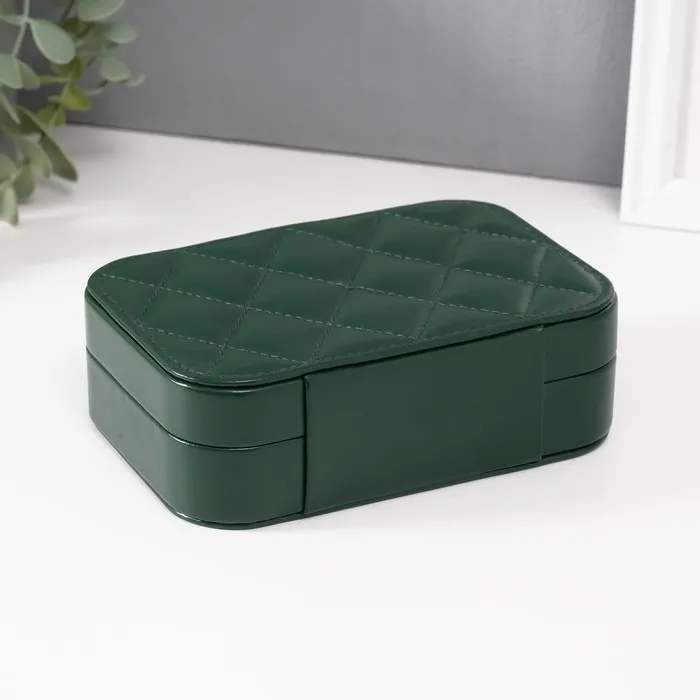 Шкатулка для украшений «Стёганая. Ромбы», колец, серёжек, кулонов, искусственная кожа, т. зелёная, 11×16×5 см — Характеристики
