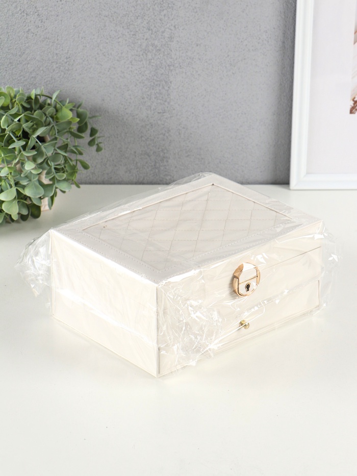 Шкатулка для украшений «Стёганная», 2 яруса, белая, 17.5×23.5×10.5 см — Характеристики