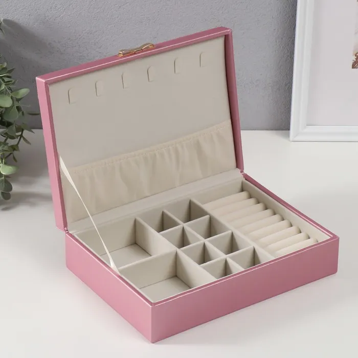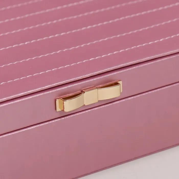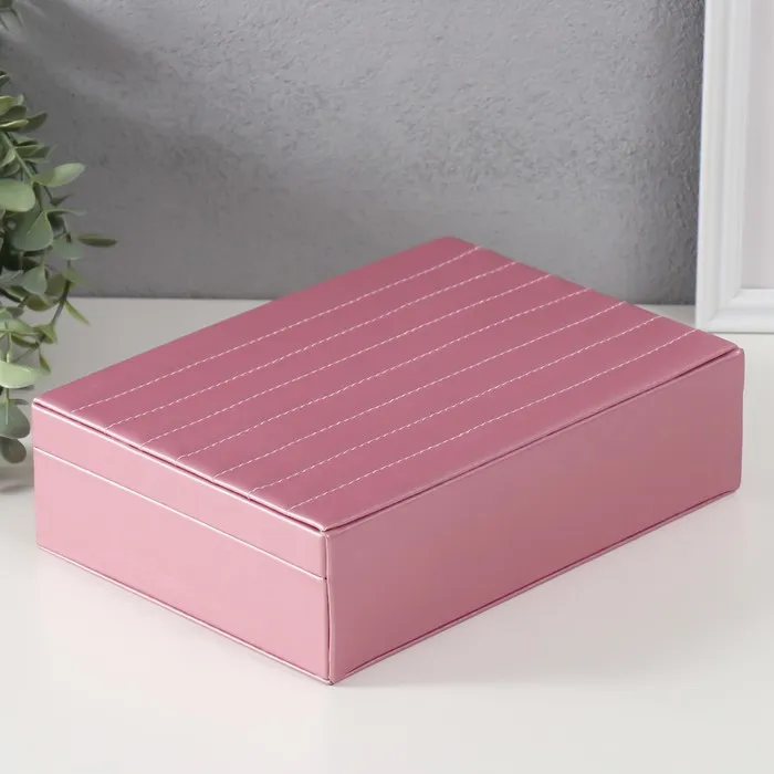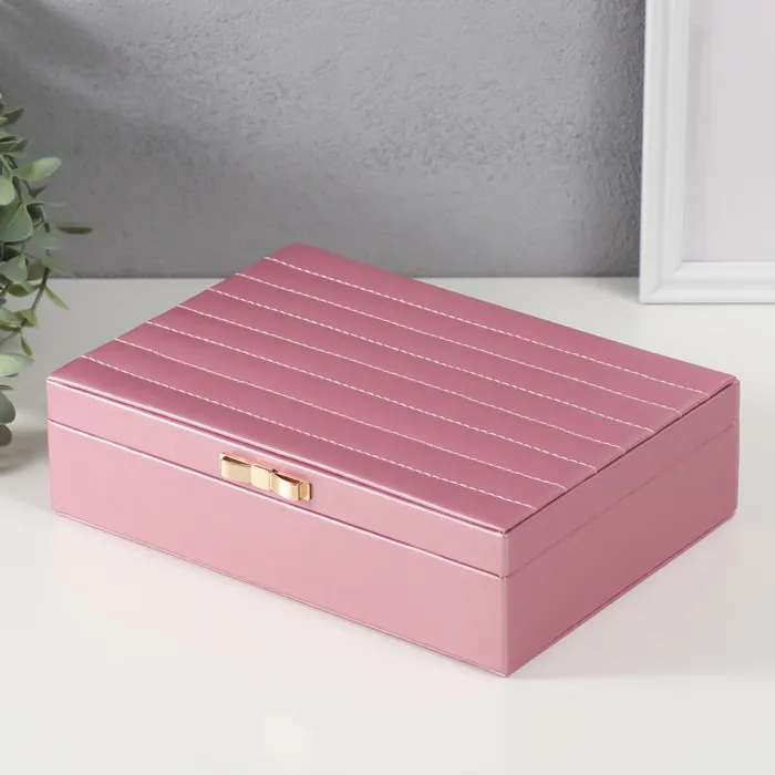 Шкатулка для украшений «Стёганная. Полоски. Бант», искусственная кожа, розовый металлик, 17×24×7 см — Характеристики
