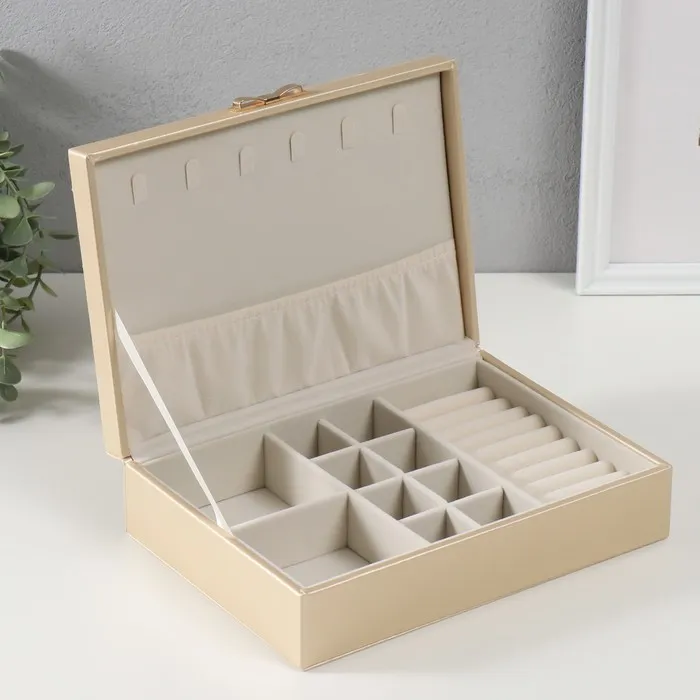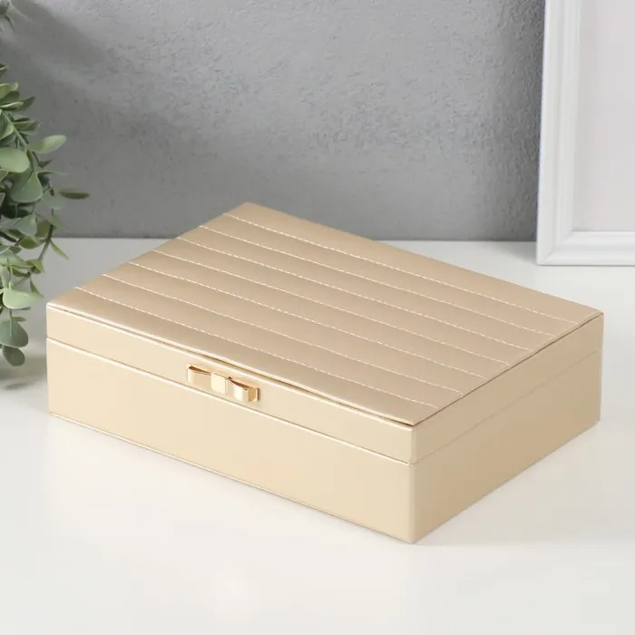 Шкатулка для украшений «Стёганная. Полоски. Бант», искусственная кожа, золото, 17×24×7 см — Характеристики