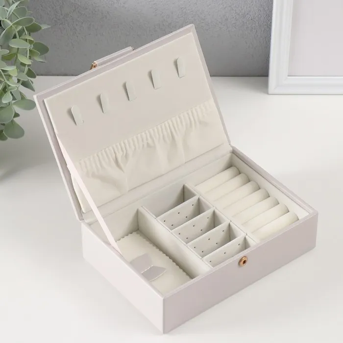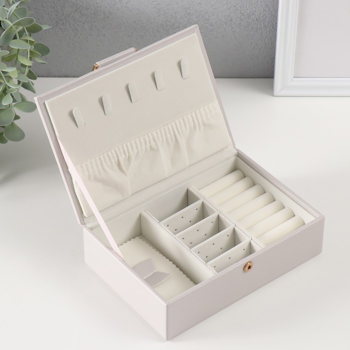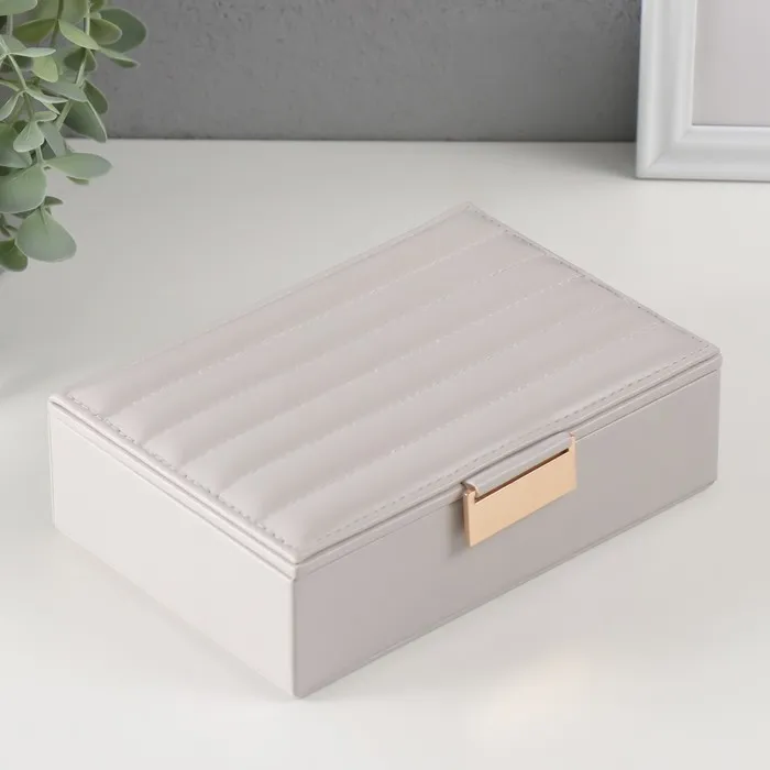 Шкатулка для украшений «Стёганная. Полоски», кожзам, серая 13×18×5.2 см — Характеристики