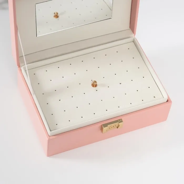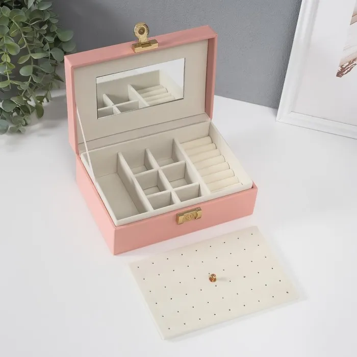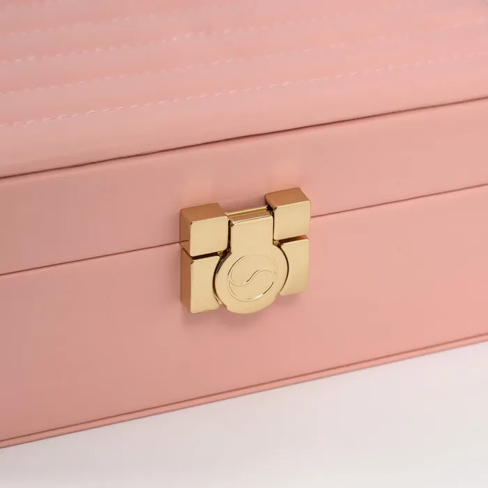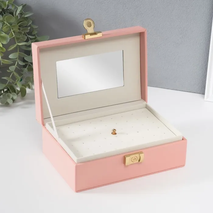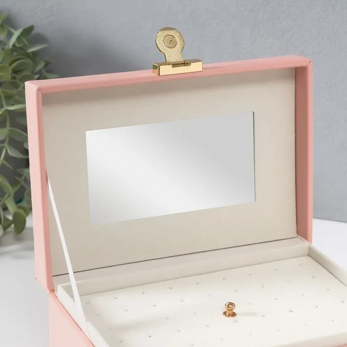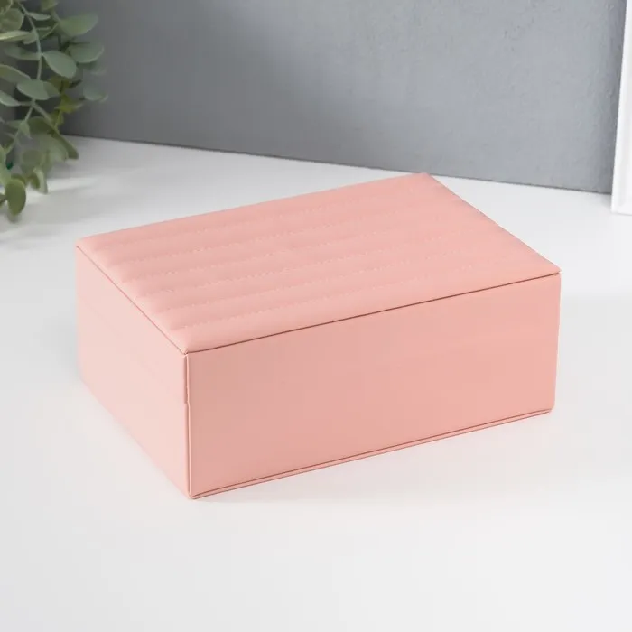 Шкатулка для украшений «Стёганная. Полоски», с зеркалом, искусственная кожа, с замком, розовая, 14×20×8 см — Характеристики