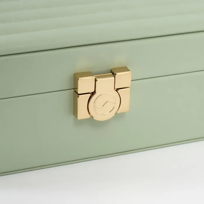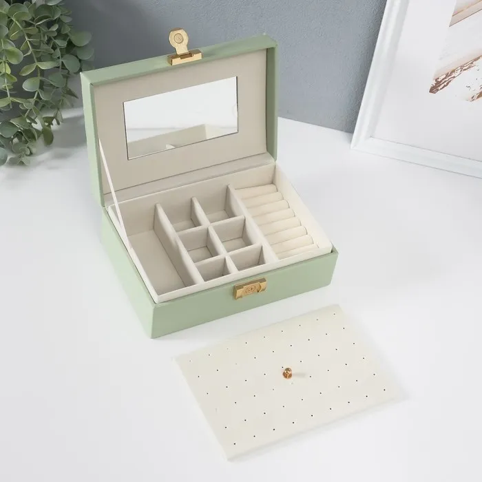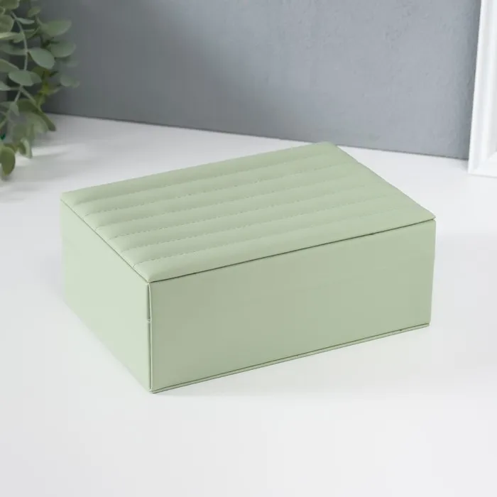 Шкатулка для украшений «Стёганная. Полоски», с зеркалом, искусственная кожа, с замком, серо-зелёная, 14×20×8 см — Характеристики