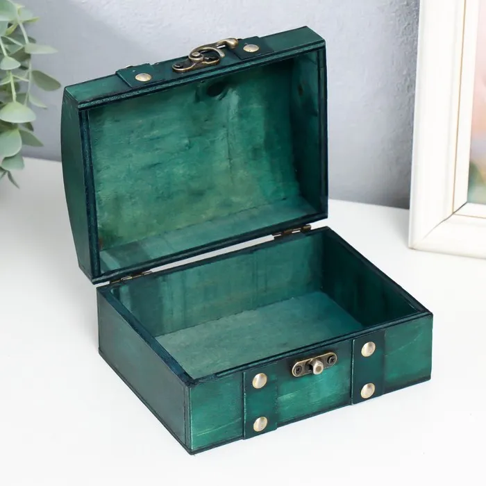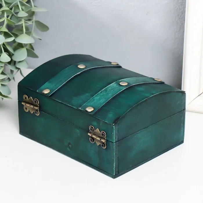 Шкатулка для украшений «Сундучок. Алиенора», дерево, с заклёпками, выпуклая, зелёный, 15×11.5×7.5 см — Характеристики