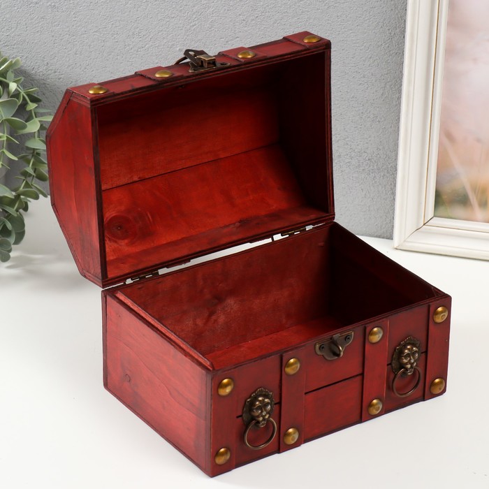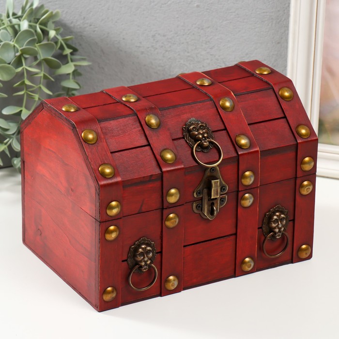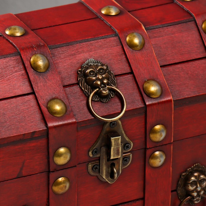 Шкатулка для украшений «Сундучок. Лев. С заклёпками», дерево, коричнево-красная, 16×15.5×22 см — Характеристики