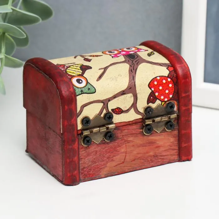 Шкатулка для украшений «Сундучок. Совята», дерево, 6×8×5.5 см — Характеристики