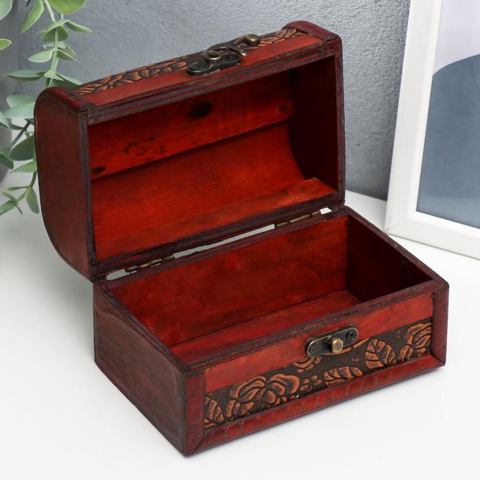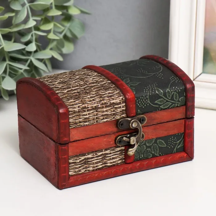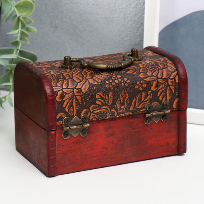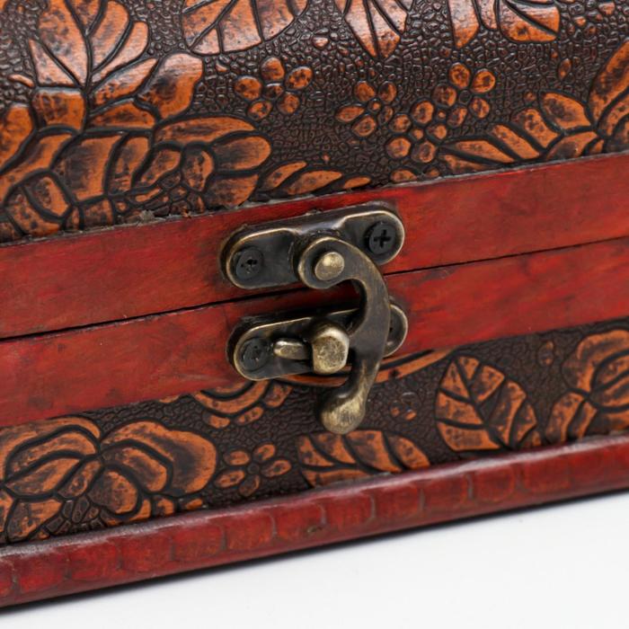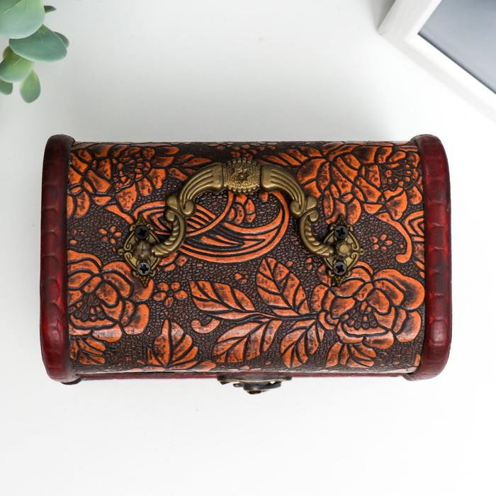 Шкатулка для украшений «Сундучок. Цветочный узор», дерево, 10×15×10.5 см выполнена из дерева, её форма напоминает сундук XVII века. Кажется, что если её открыть, Вас окинет блеск золотых сокровищ великой императрицы. Прекрасная вещь, которая пригодится любой даме, ведь туда можно поместить не только украшения, но и различные мелочи, вроде принадлежностей для шитья. Шкатулка, которая пригодится в обиходе любой женщины.