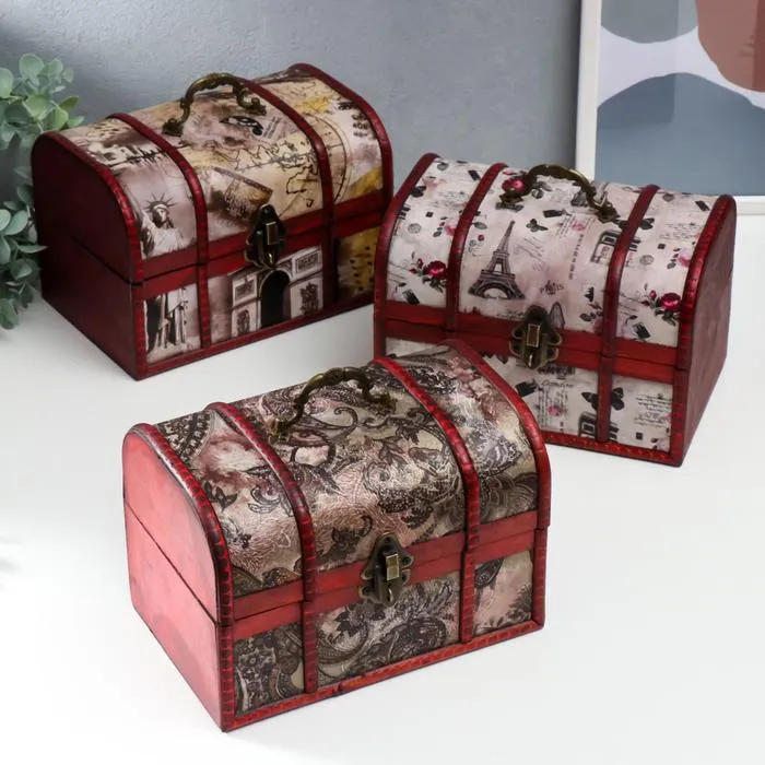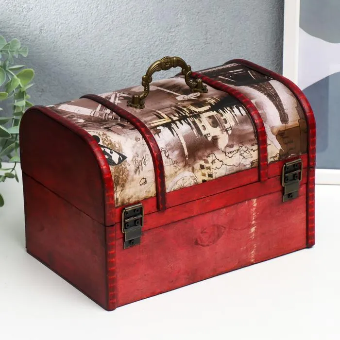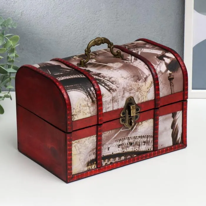 Шкатулка для украшений «Сундучок. Цветы и города», дерево, состаренная, 15×22×15.5 см, МИКС — Характеристики
