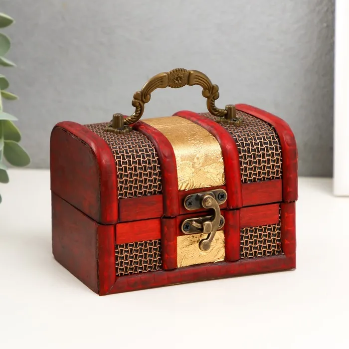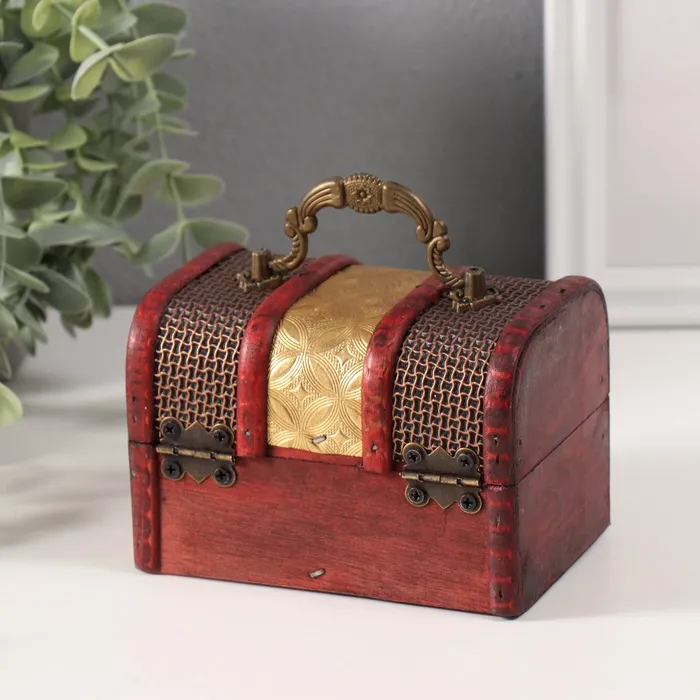 Шкатулка для украшений «Сундучок. Золотая сеть и штукатурка», дерево, 8.5×12×8.5 см — Характеристики