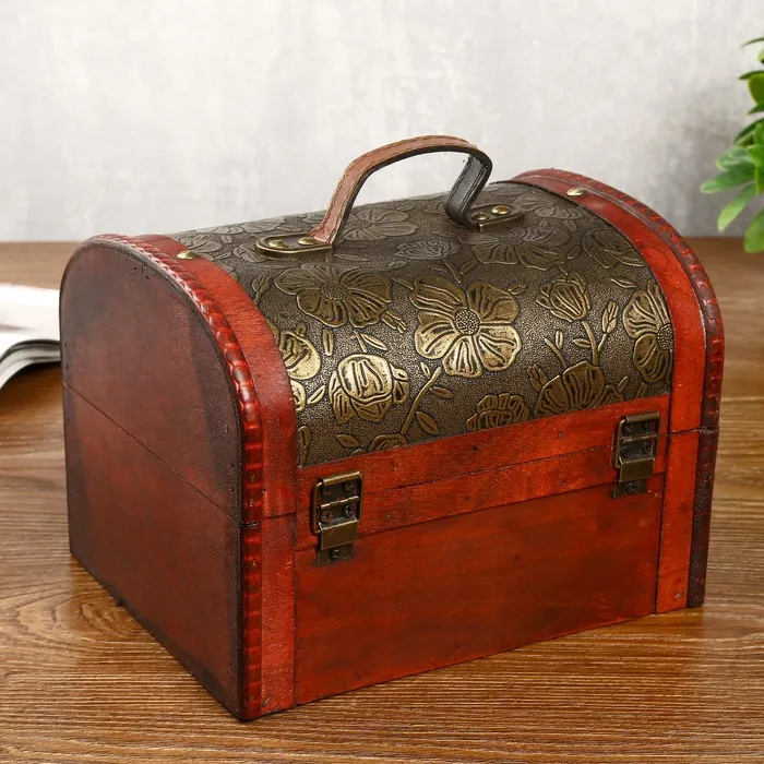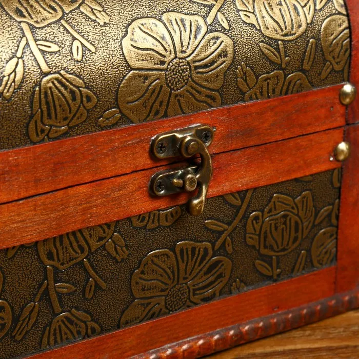 Шкатулка для украшений «Сундучок. Золотые цветы на чёрном», дерево, состаренная, 17×22.5×18 см — Характеристики