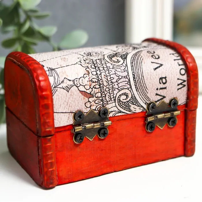 Шкатулка для украшений «Сундук. Карта», для мелочи, дерево, 6×6×9 см — Характеристики