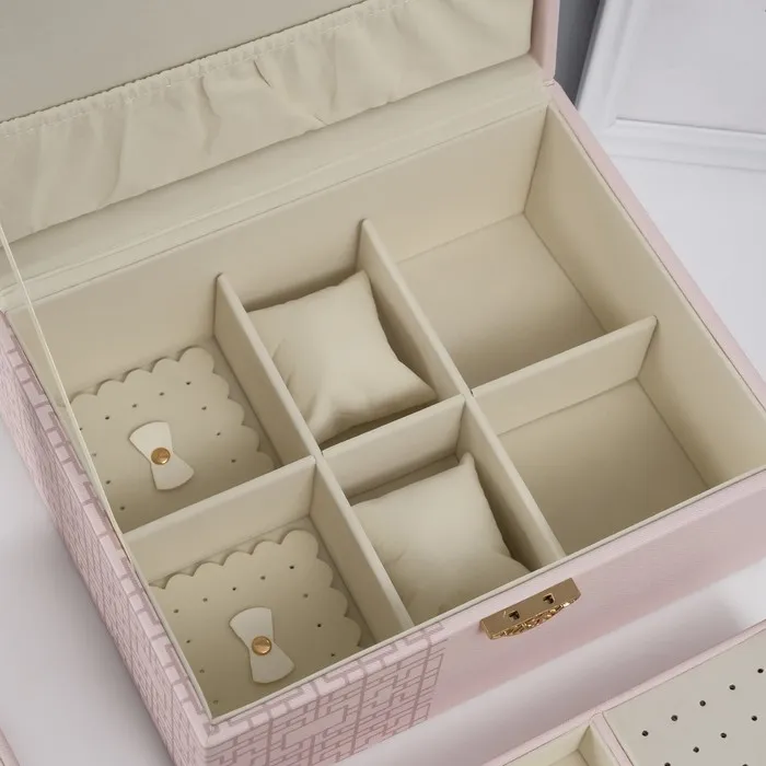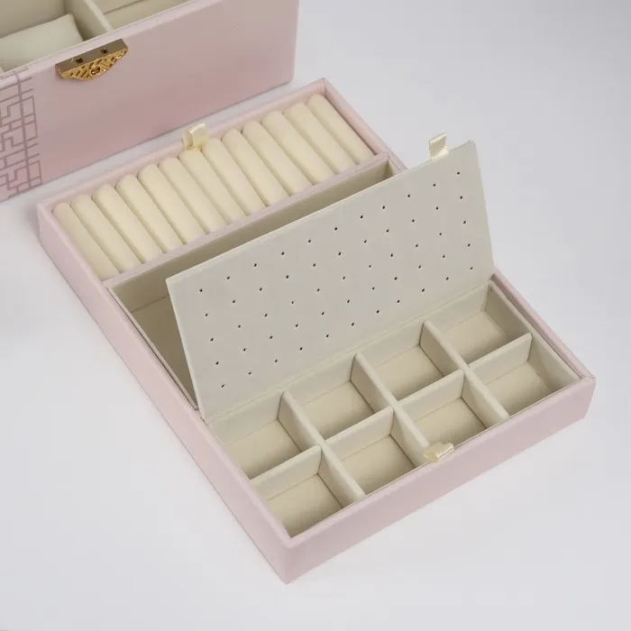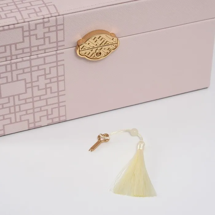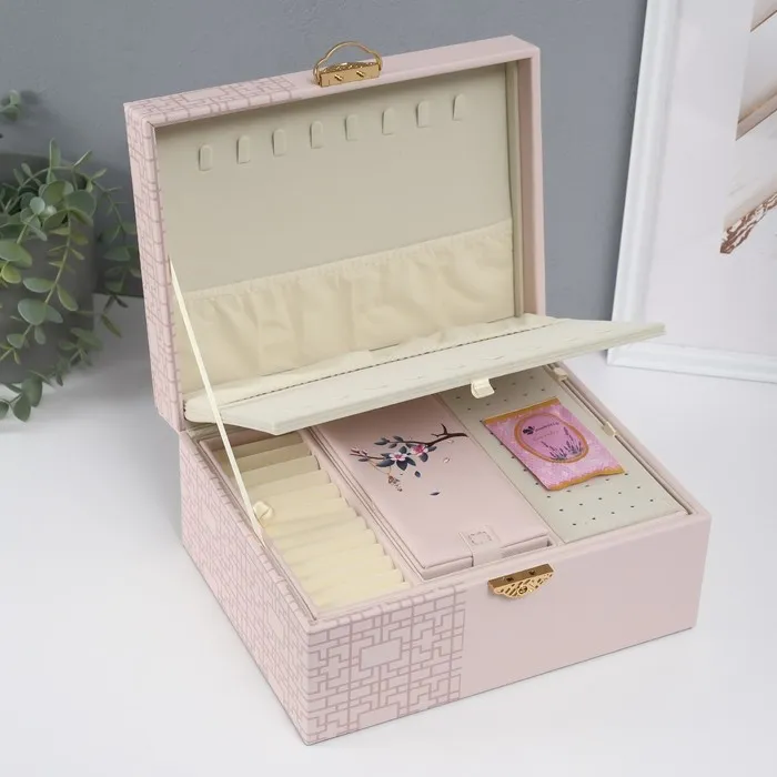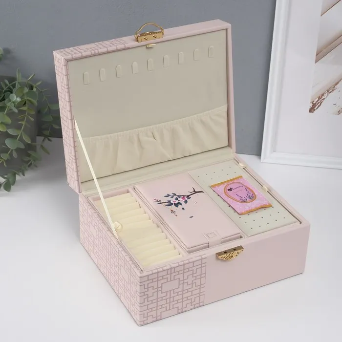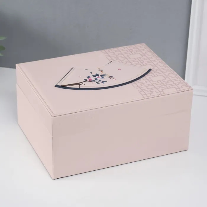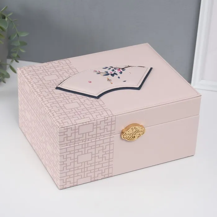 Шкатулка для украшений «Сундук. Кулон на сакуре. Узоры», искусственная кожа, бежевая, 26×20×13 см — Характеристики