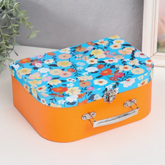 Шкатулка для украшений «Сундук. Цветы на синем», картон, 25×10×18.5 см — Характеристики