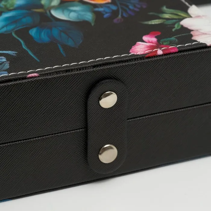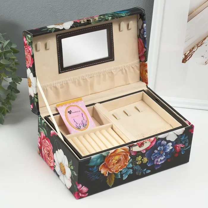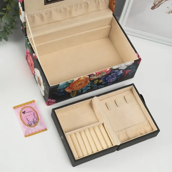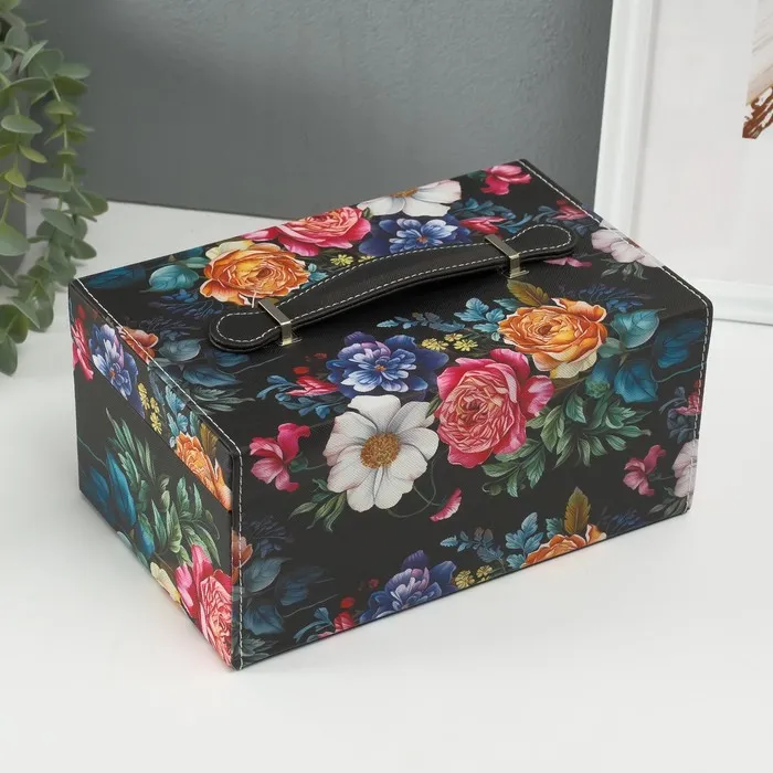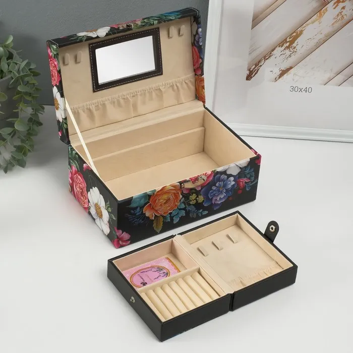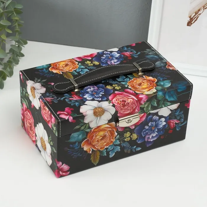Шкатулка для украшений «Сундук. Винтажный букет на чёрном», искусственная кожа, 24×15×12 см — Характеристики