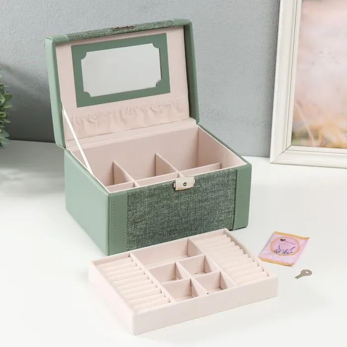 Шкатулка для украшений «Сундук. Зелёная», искусственная кожа, комбинированная, 23.5×16.5×14.5 см — Характеристики