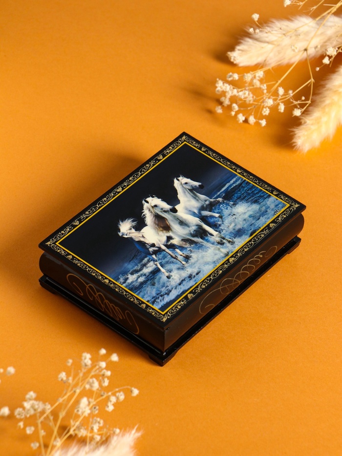 Храните драгоценности в стильной шкатулке с красивым изображением! Лаковая шкатулка «Три коня» — это изделие народного промысла, созданное для хранения украшений и мелких предметов.