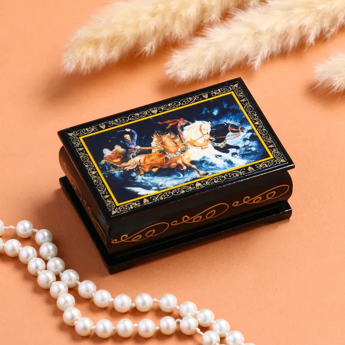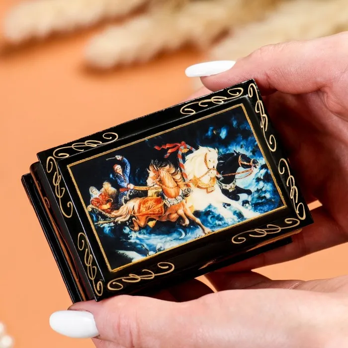 Шкатулка для украшений «Тройка», 6×9 см, лаковая миниатюра