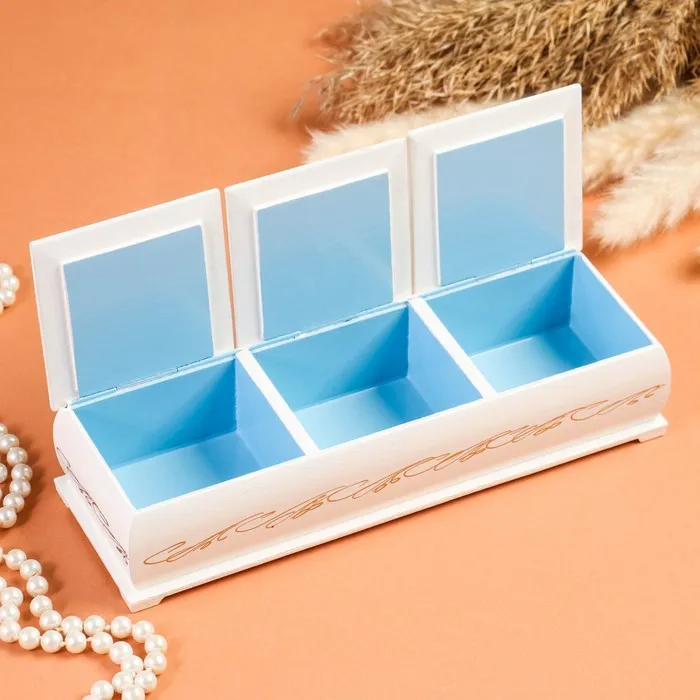 Шкатулка изготовлена из дерева, покрыта краской. Заранее напечатанное изображение приклеено и покрыто лаком. Дополнительно мастер наносит узор.