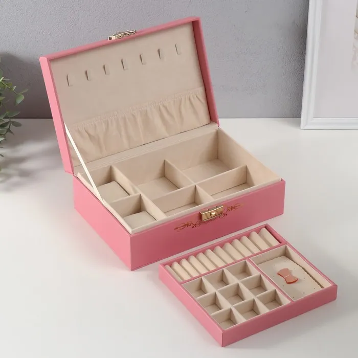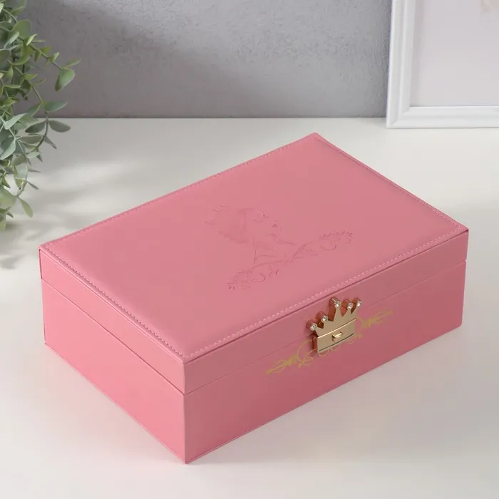 Шкатулка для украшений «Царица», искусственная кожа, розовая, 18×27×9 см — Характеристики
