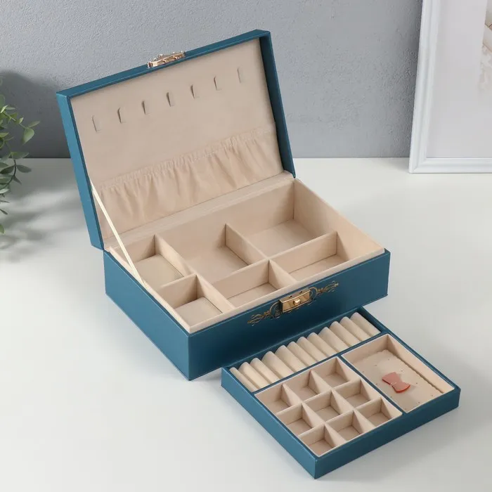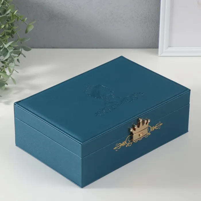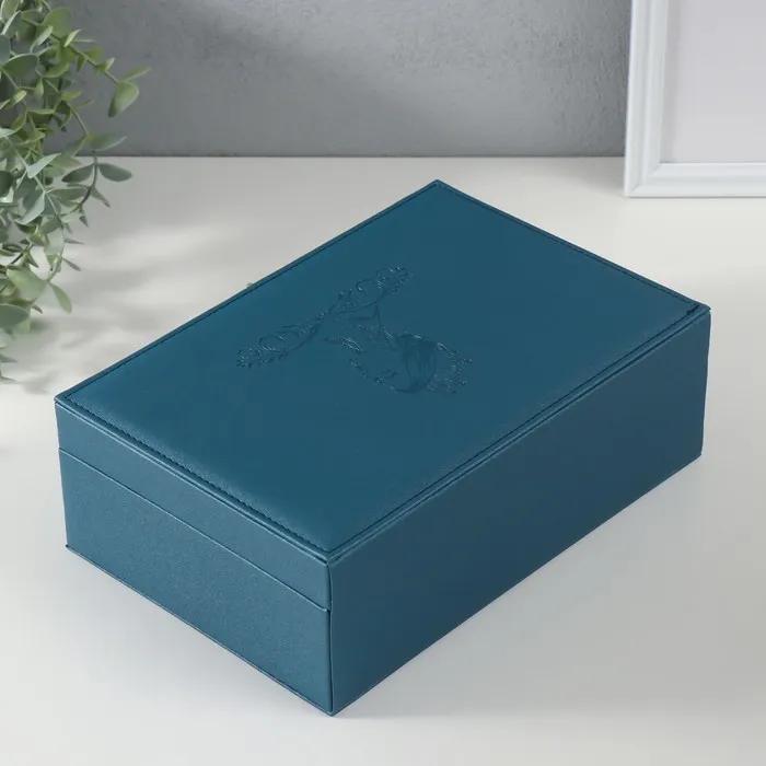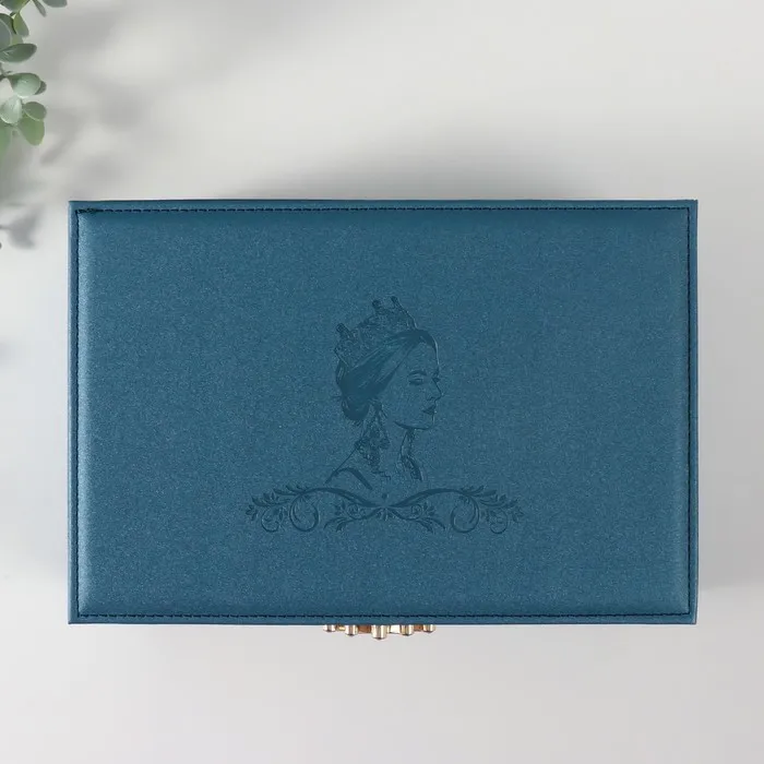 Шкатулка для украшений «Царица», искусственная кожа, синяя, 18×27×9 см — Характеристики