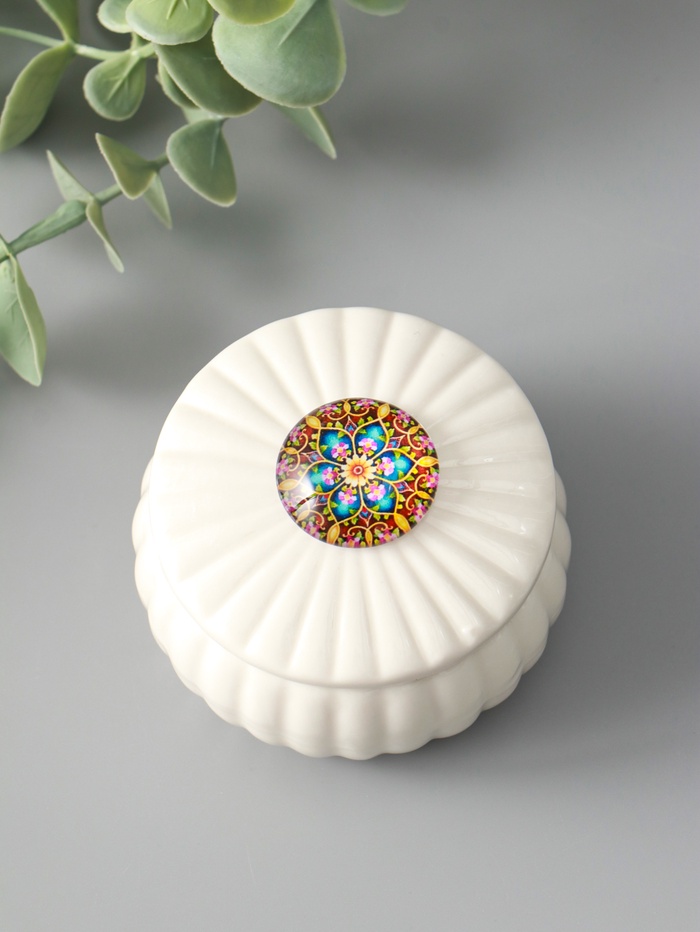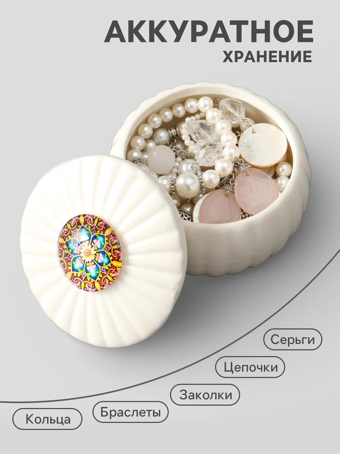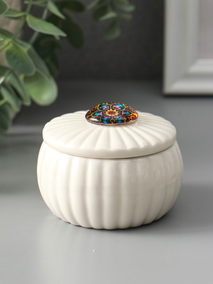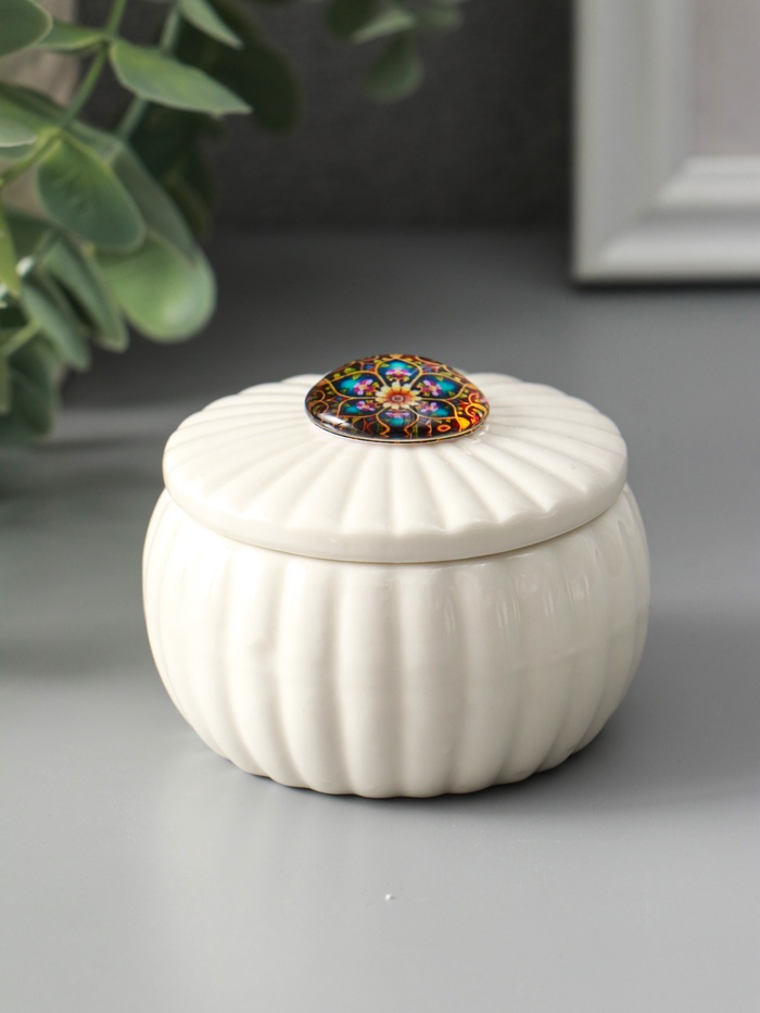 Шкатулка для украшений «Цветок-калейдоскоп«, с крышкой, белая, керамика, 7×7×5.3 см — Характеристики
