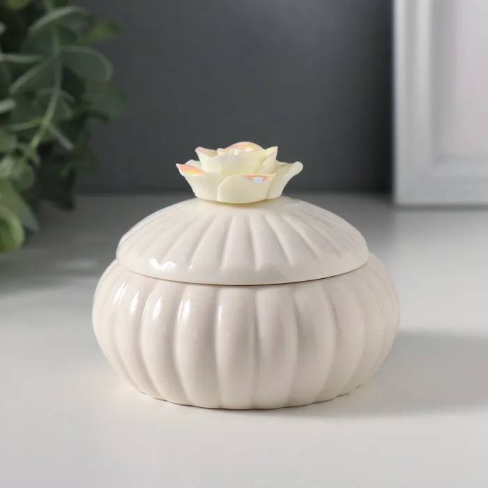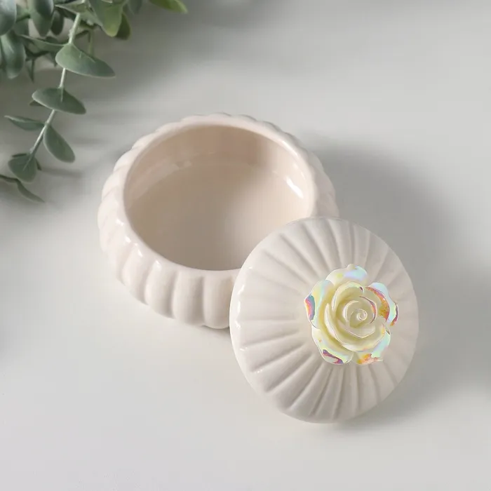 Шкатулка для украшений «Цветок розы», керамика, белый перламутр, 7.5×7.5×6.5 см — Характеристики