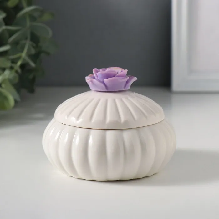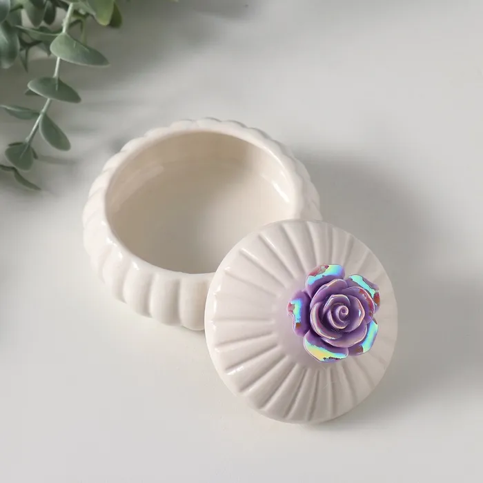 Шкатулка для украшений «Цветок розы», керамика, сирень перламутр, 7.5×7.5×6.5 см — Характеристики