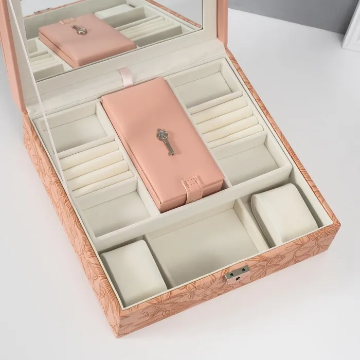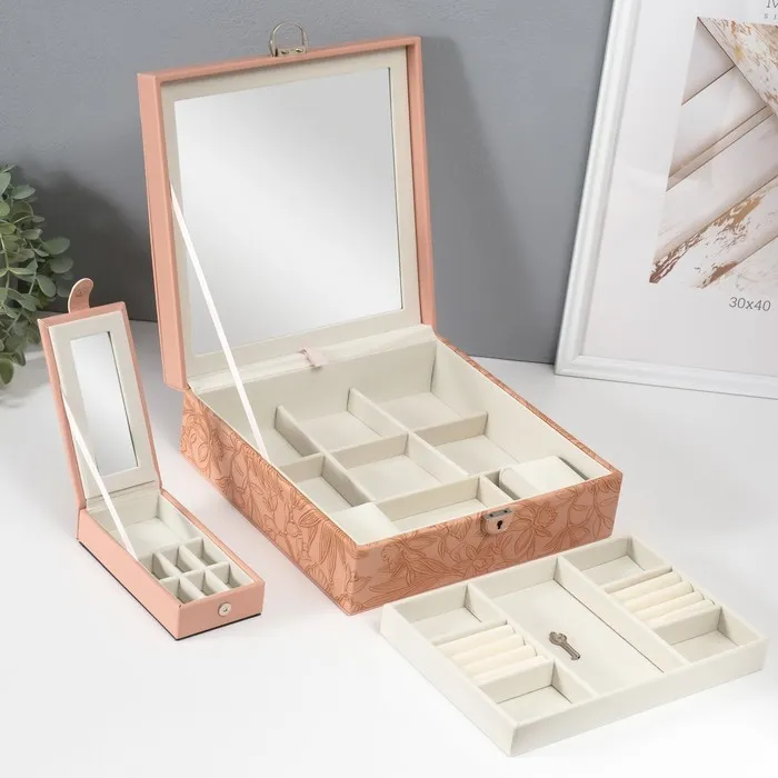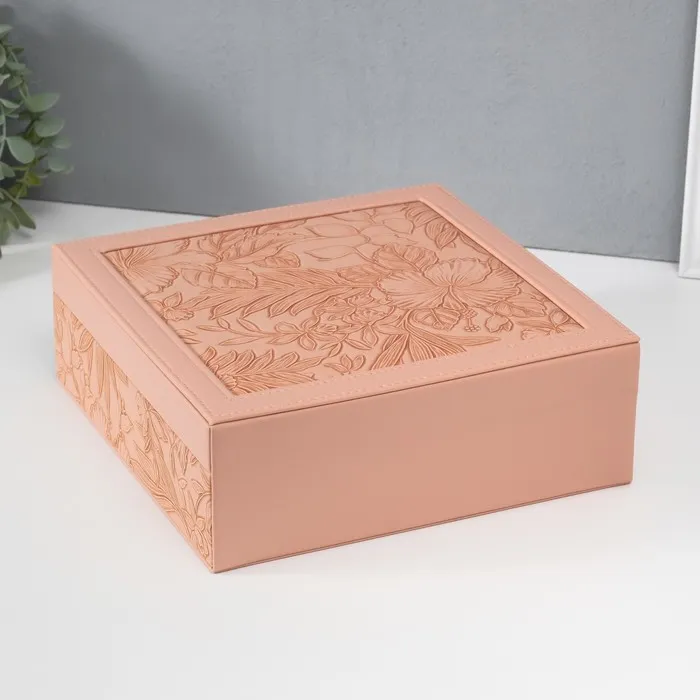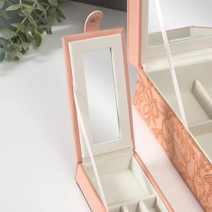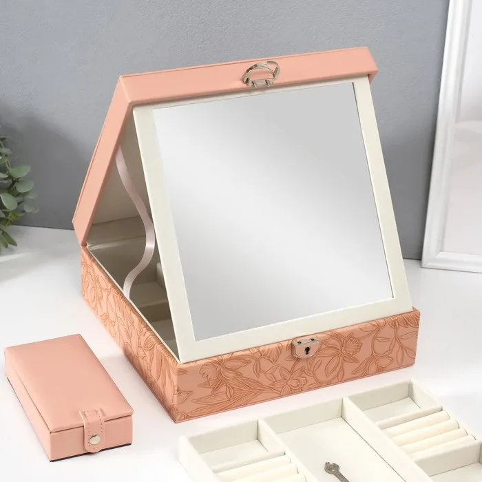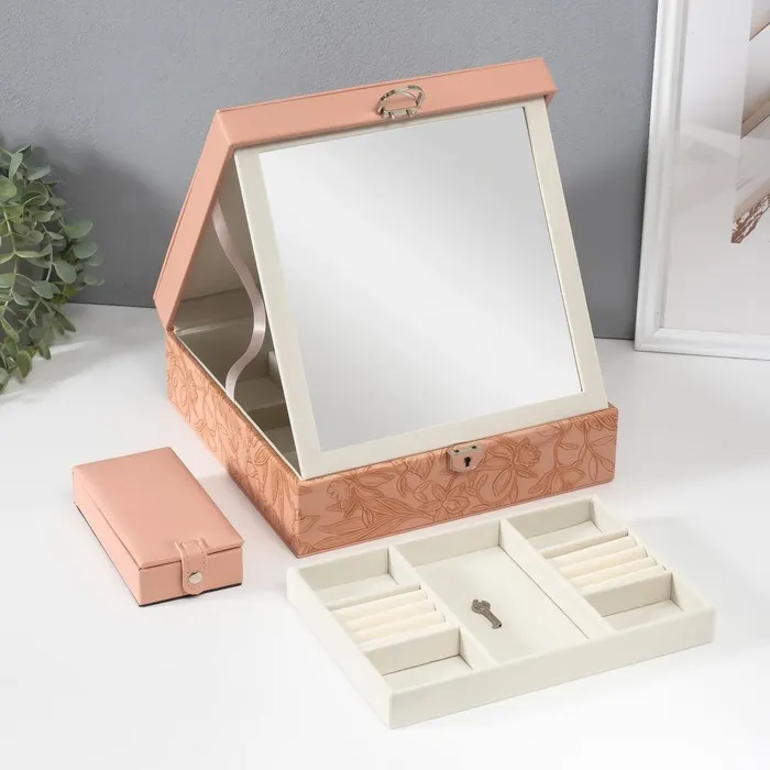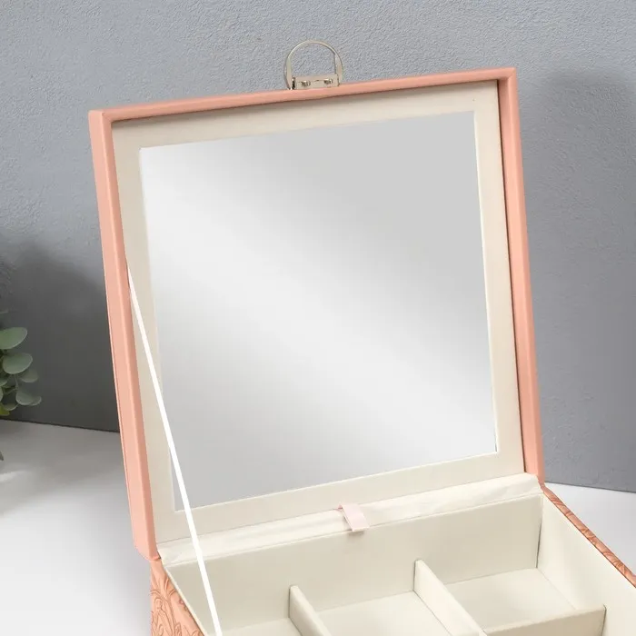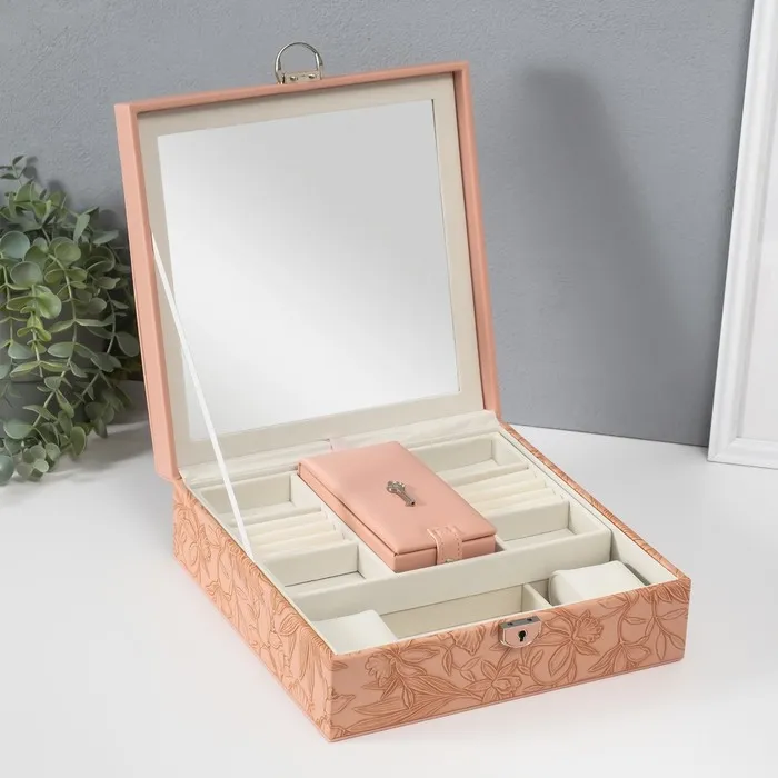 Шкатулка для украшений «Цветы», с зеркалом, искусственная кожа, с замком, розовая, 25×25×8 см — Характеристики