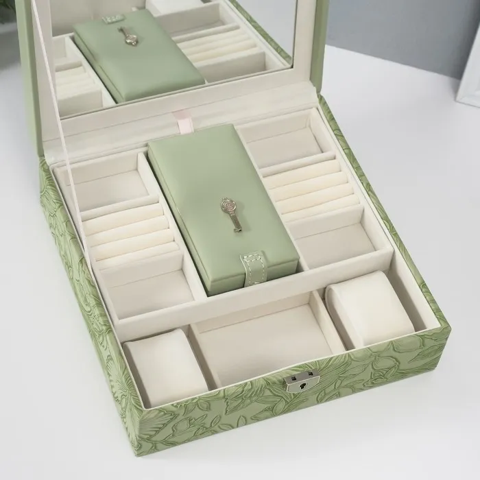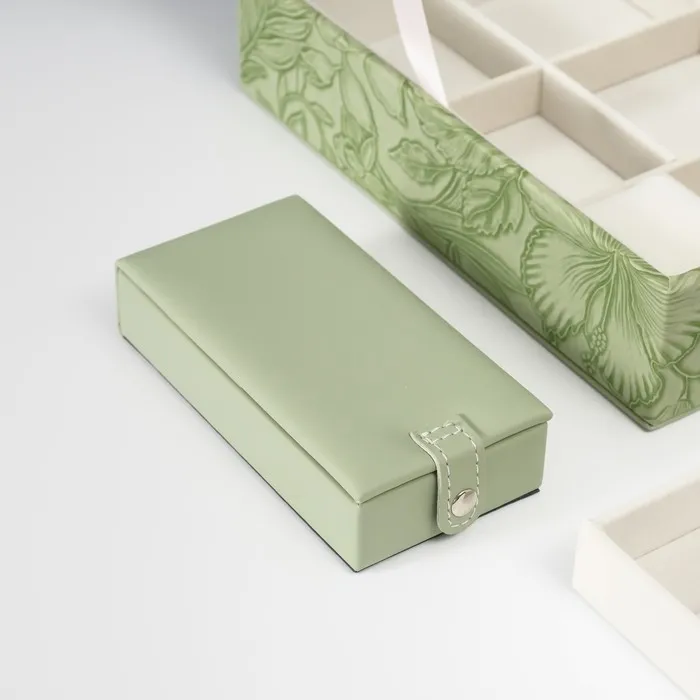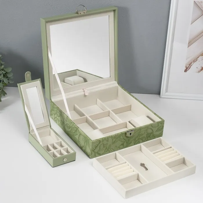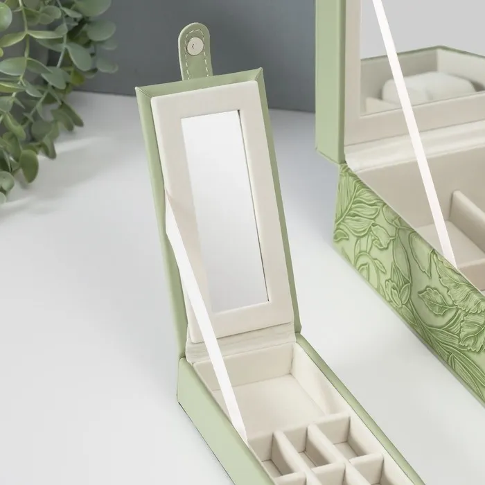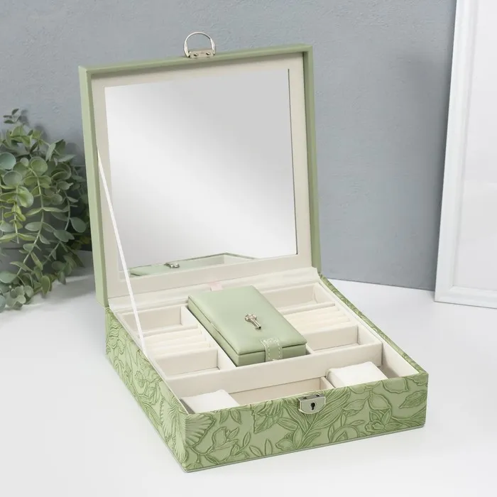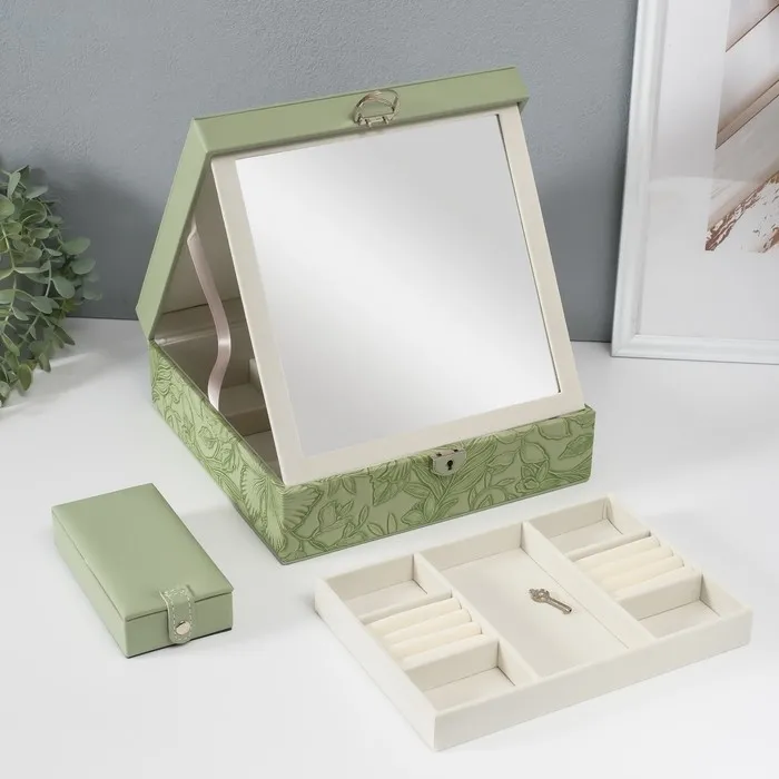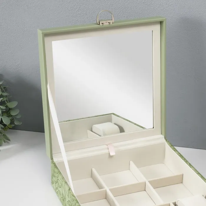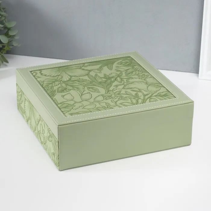 Шкатулка для украшений «Цветы», с зеркалом, искусственная кожа, с замком, серо-зелёная, 25×25×8 см — Характеристики