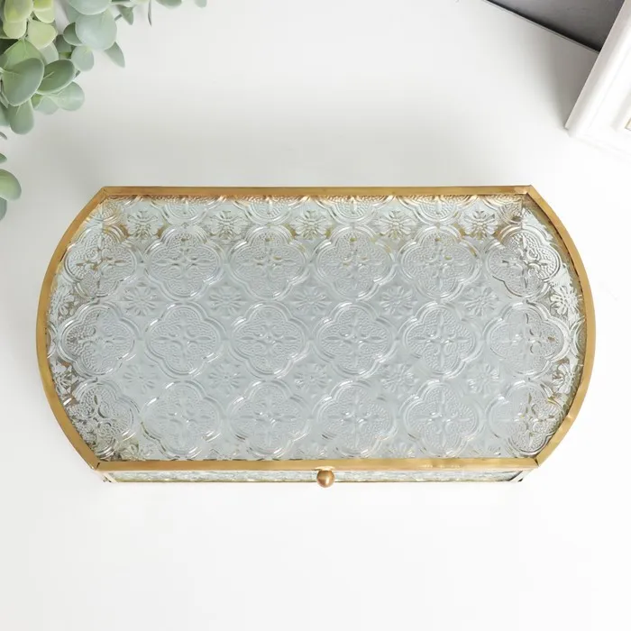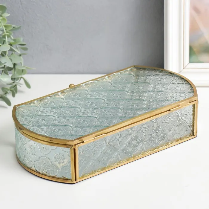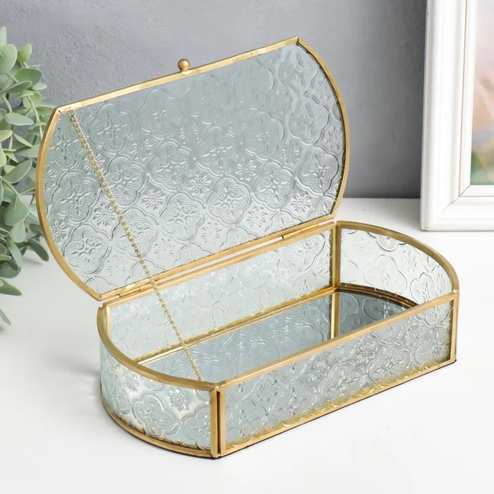Шкатулка для украшений «Узорная», стекло с металлическим каркасом, золото, 5.5×13.5×24.5 см — Характеристики