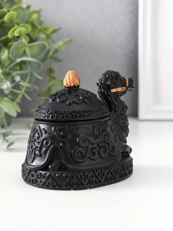 Пусть ваши драгоценности обретут достойный дом в этом изысканном изделии, воплотившем дух восточной мудрости и спокойствия. Шкатулка в форме благородного верблюда — это не просто функциональный аксессуар, а настоящее произведение искусства, которое станет ярким акцентом на вашем туалетном столике или изящным подарком для ценителя прекрасного.