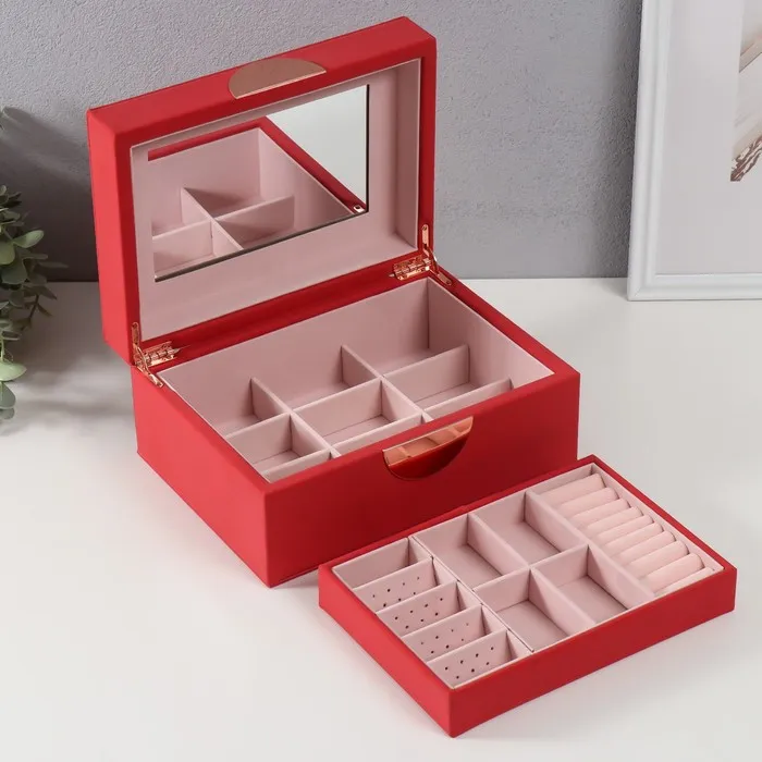 Шкатулка для украшений «Веточка. Радуга», с зеркалом, искусственная кожа, красная, 18×24.5×11 см — Характеристики