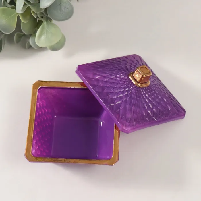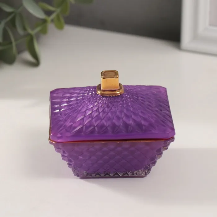 Шкатулка для украшений «Вспышка», стекло, сирень с золотом 7.5×7.5×6 см — Характеристики