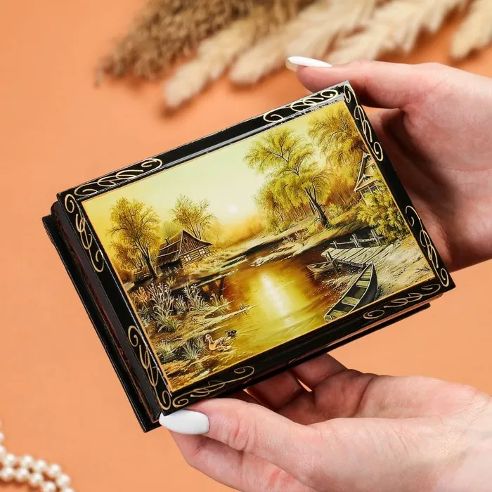 Шкатулка для украшений «Закат», 10×14 см, лаковая миниатюра — Характеристики