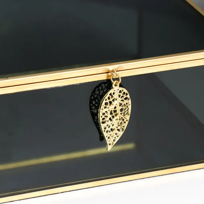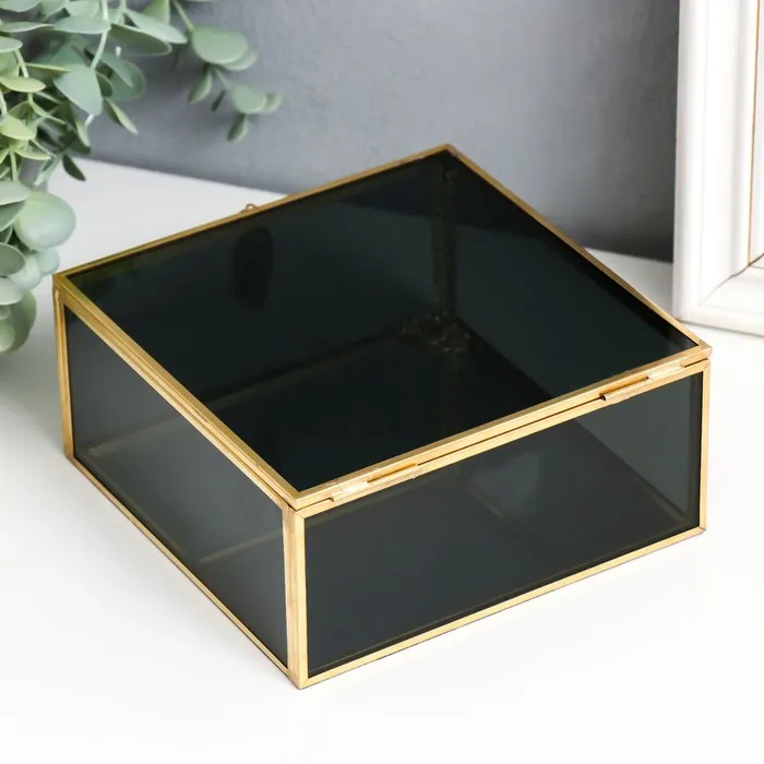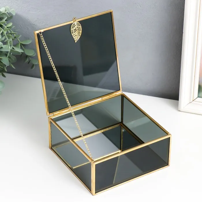 Шкатулка для украшений «Затемнённая с листом», стекло с металлическим каркасом, 15×15×6.5 см — Характеристики