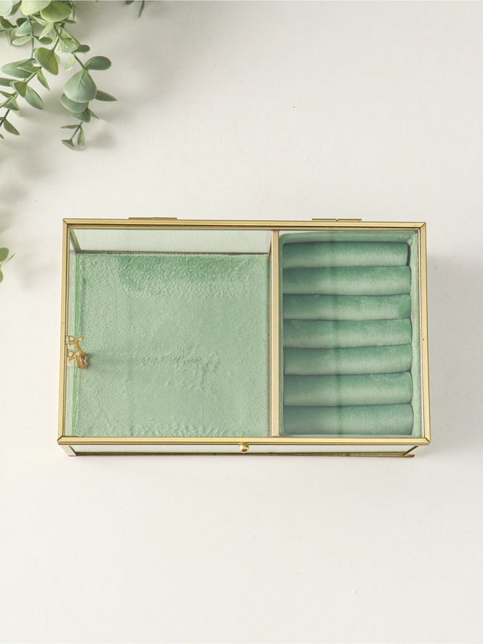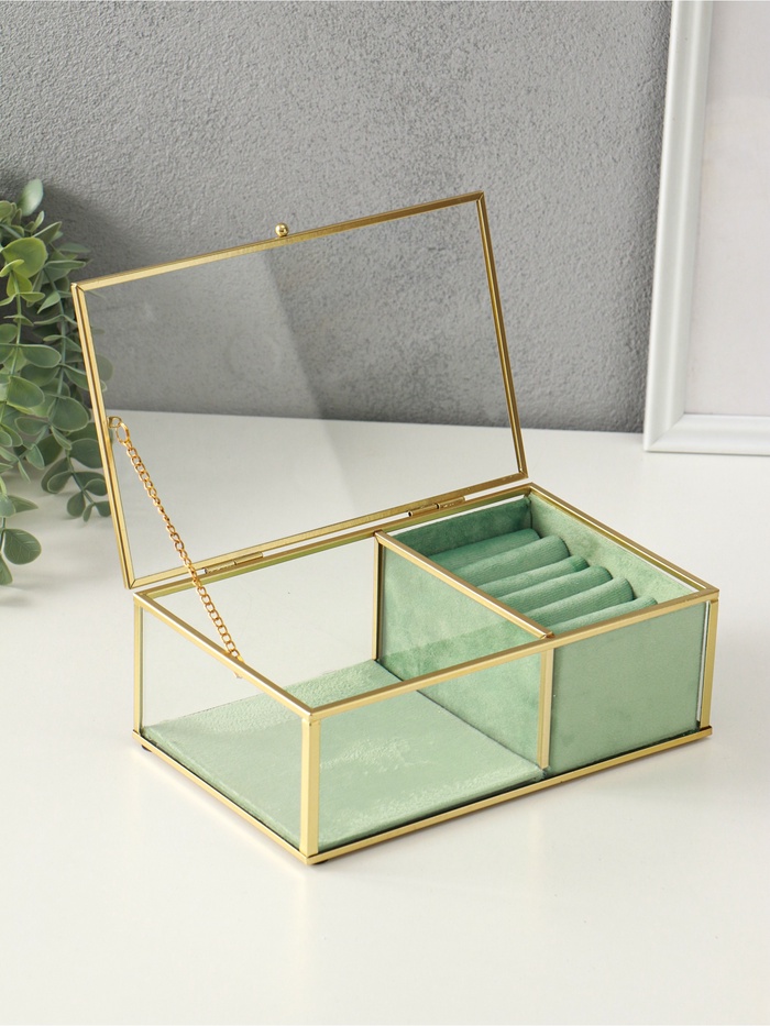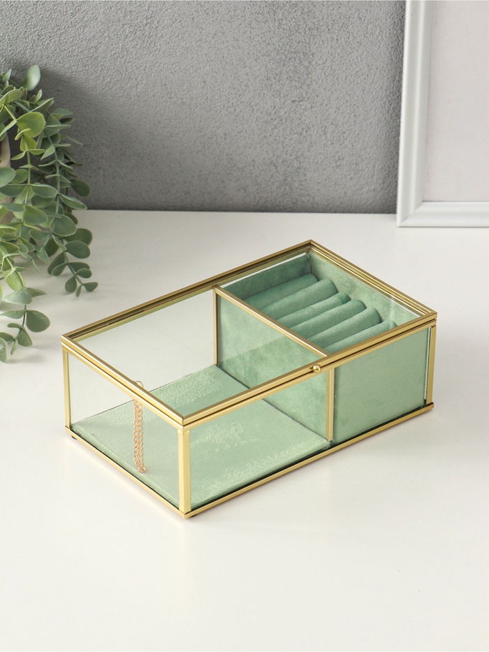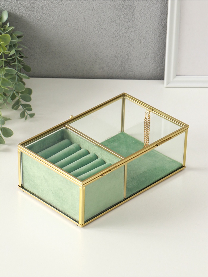 Эта классическая шкатулка для драгоценностей станет надёжным хранилищем для вашей коллекции и элегантным акцентом на туалетном столике. Её прямоугольная форма с металлическим каркасом и прозрачными стеклянными стенками создаёт ощущение лёгкости и в то же время прочности. Внутри — два отдельных отделения с мягкой обивкой, чтобы ваши кольца, серьги и цепочки оставались в идеальном порядке и без царапин.