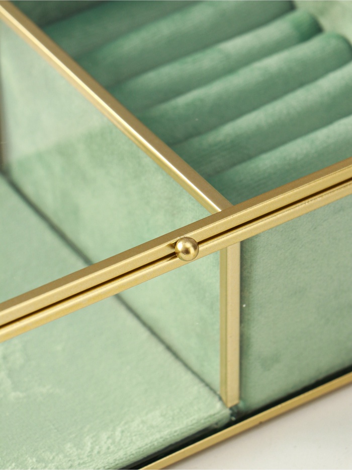 Шкатулка для украшений «Зелёная», 2 отделения, стекло с металлическим каркасом, 22×14.5×7.5 — Характеристики